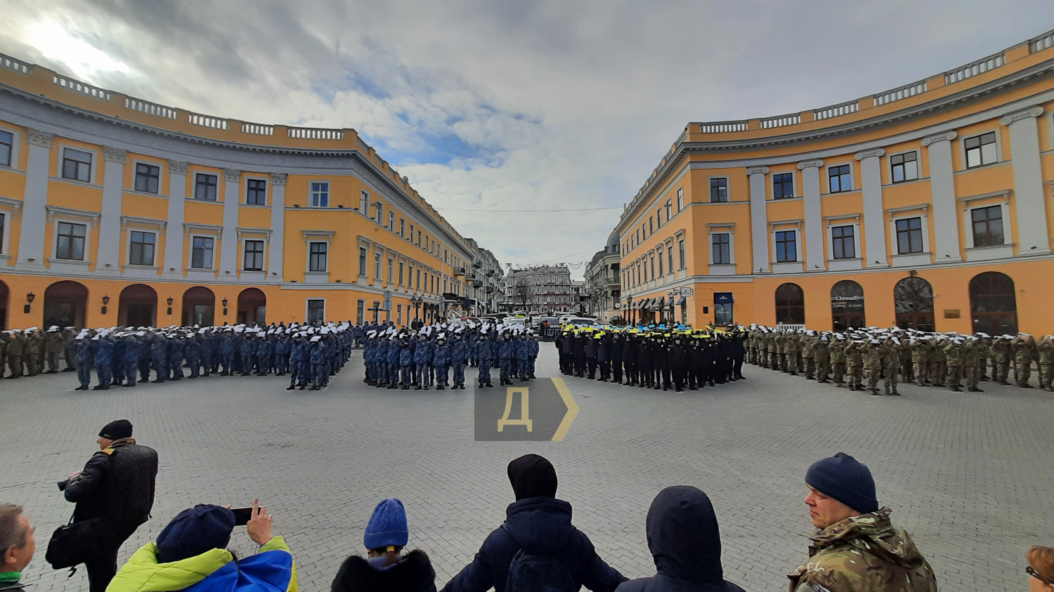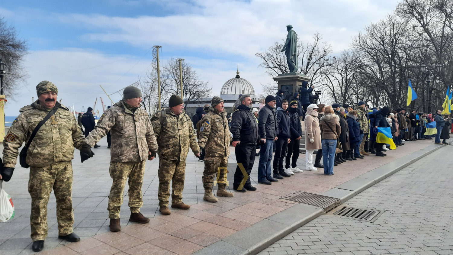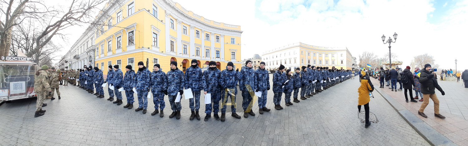 День Cоборности Украины: одесские курсанты выстроились в надпись «Разом» около ДюкаСегодня на Приморском бульваре по случаю празднования Дня Соборности Украины возле памятника Дюку де Ришелье курсанты Института военно-морских сил Национального университета «Одесская морская академия», Одесской военной академии и Одесского государственного университета внутренних дел выстроились в надпись «Разом». Как передает корреспондент «Думской», акция проходила при поддержке Центра патриотического воспитания. По словам организатора акции Натальи Михайленко, основной посыл мероприятия – показать всем, что украинцы едины. «Наша сила в единстве, и с помощью этой фигуры мы еще раз напоминаем, что украинцы вместе, мы «Разом», с нашими вооруженными силами», — подчеркнула Наталья Михайленко. Также в ходе акции ее участники выстроились в живую цепь на Приморском бульваре и скандировали: «Разом і до кінця», «Слава Україні – героям слава», «Слава Збройним силам України», «Слава нації – смерть ворогам». По окончании акции все участники спели гимн Украины. Фото, видео — Андрей Колисниченко СМЕРТЬ РОСІЙСЬКИМ ОКУПАНТАМ! Помітили помилку? Виділяйте слова з помилкою та натискайте control-enter |