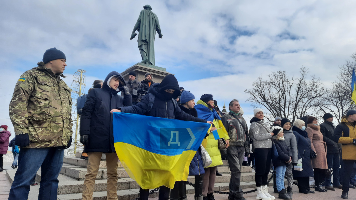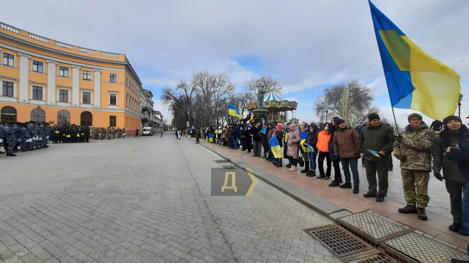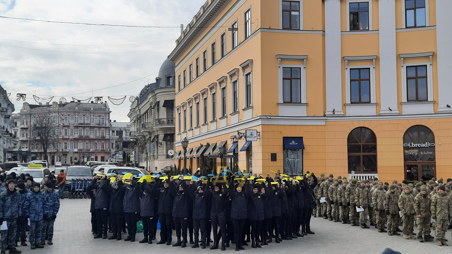 День Cоборности Украины: одесские курсанты выстроились в надпись «Разом» около ДюкаСегодня на Приморском бульваре по случаю празднования Дня Соборности Украины возле памятника Дюку де Ришелье курсанты Института военно-морских сил Национального университета «Одесская морская академия», Одесской военной академии и Одесского государственного университета внутренних дел выстроились в надпись «Разом». Как передает корреспондент «Думской», акция проходила при поддержке Центра патриотического воспитания. По словам организатора акции Натальи Михайленко, основной посыл мероприятия – показать всем, что украинцы едины. «Наша сила в единстве, и с помощью этой фигуры мы еще раз напоминаем, что украинцы вместе, мы «Разом», с нашими вооруженными силами», — подчеркнула Наталья Михайленко. Также в ходе акции ее участники выстроились в живую цепь на Приморском бульваре и скандировали: «Разом і до кінця», «Слава Україні – героям слава», «Слава Збройним силам України», «Слава нації – смерть ворогам». По окончании акции все участники спели гимн Украины. Фото, видео — Андрей Колисниченко СМЕРТЬ РОСІЙСЬКИМ ОКУПАНТАМ! Помітили помилку? Виділяйте слова з помилкою та натискайте control-enter |