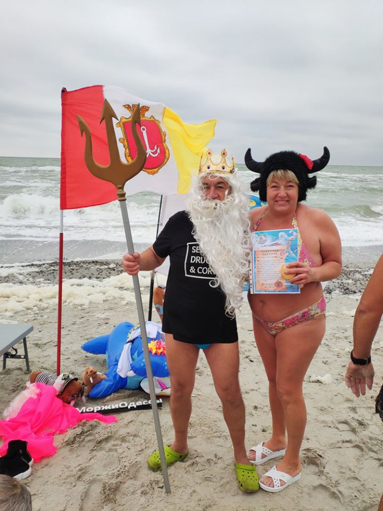 Сегодня на Ланжероне закаленные одесситы отметили международный День моржа. В этом году любители купания в ледяной воде подошли к организации акции серьезно, ведь недавно в Одессе затонул танкер, выбросивший в море нефтепродукты. Накануне праздника воду на Ланжероне проверили. Убедившись, что туда загрязнение не добралось, моржи приступили к водным процедурам. Кроме разминки и заплыва, участники праздника традиционно устроили костюмированное представление, в рамках которого Нептун со своей свитой вручал грамоты новичкам. Сам затонувший танкер «Делфи», который уже успел стать настоящей звездой интернета, фигурировал и в акции моржей. Они специально пришли на пляж Дельфин, чтобы на его фоне вместе прокричать: «За чистое море!». Фото и видео — Клуб Моржи Одессы СМЕРТЬ РОСІЙСЬКИМ ОКУПАНТАМ!