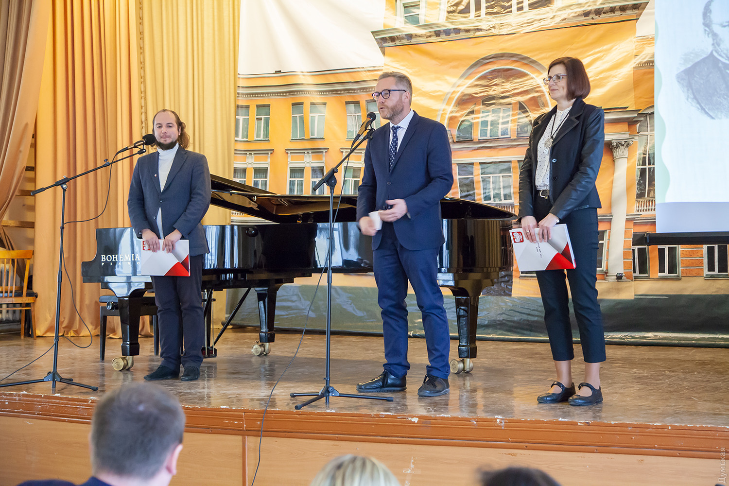 В рамках международной туристической недели в концертном зале музыкальной школы-интерната имени Столярского состоялся концерт и лекция, посвященные 200-летию со дня рождения польского композитора Станислава Монюшко. Открыл концерт оркестр школы Столярского исполнением мазурки Станислава Монюшко. Музыкальный вечер продолжился с произведениями польского композитора в исполнении заслуженного деятеля искусств Республики Польша Светланы Самойленко и дипломанта международных конкурсов Светланы Серенко. Директор учебного заведения Евгений Лисюк отметил, что школа поддерживает дружеские отношения с Польшей, организовывает поездки во Вроцлав и Краков. «Хотелось бы еще больше познакомиться с польской музыкальной литературой, поэтому так важны для учеников и преподавателей такие мероприятия», — заявил он. В свою очередь, директор департамента маркетинга муниципалитета Варшавы Роберт Зидель отметил, что он первый раз находится в Украине и в Одессе в частности, и очарован нашим городом. Он заверил, что приедет сюда еще раз, чтобы организовывать совместные проекты. СМЕРТЬ РОСІЙСЬКИМ ОКУПАНТАМ! Помітили помилку? Виділяйте слова з помилкою та натискайте control-enter |