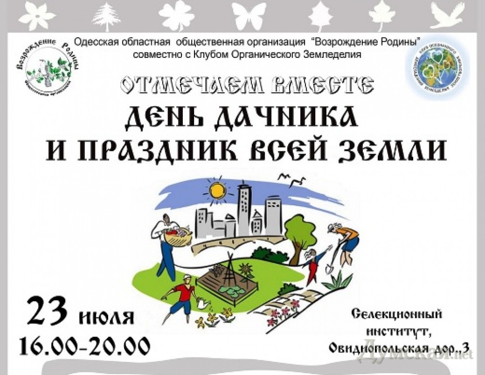 В Одессе на территории Селекционного института 23 июля состоится «День дачника и праздник всей Земли». Праздник посвящен земледелию и народным умельцам.