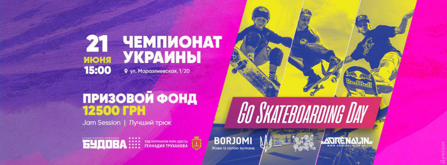 Чемпионат Украины по скейтбордингу в рамках празднования Go Skateboarding Day состоится 21 июня с 15:00 в Скейтпарке Одессы. Генеральным спонсором мероприятия выступила компания «Будова». Лучшие скейтбордисты будут соревноваться за призовой фонд 12 тысяч 500 гривен в двух дисциплинах: Jam Session — двухэтапные соревнования на лучший заезд (квалификация и финал) и Best Trick – соревнования на лучший трюк. Продемонстрировать свои технику и стиль спортсмены съедутся со всех уголков страны — им в помощь организован трансфер на Чемпионат из Киева на специальных автобусах. Наравне с профи в обоих зачетах могут принять участие все желающие, прошедшие предварительную регистрацию. Кроме того, в рамках праздника состоится проезд скейтбордистов колонной по центральным улицам города. Все желающие, не зависимо от уровня подготовки, собираются с 13:30 на Думской площади и стартуют в 14:00 по маршруту: ул. Пушкинская – ул. Дерибасовская – ул. Леха Качинского – перекресток ул.Качинского и Греческой, где они встретятся с ивент-каром RED BULL, далее – ул. Греческая – ул. Канатная – Сабанский переулок – ул. Маразлиевская, после чего участники проезда выедут на стадион Черноморец и прибудут в Скейтпарк Одессы на Маразлиевской, 1/20. Помимо спортивных соревнований и проезда колонны, празднование Go Skateboarding Day в Скейтпарке Одессы предусматривает обширную развлекательную программу с показательными выступлениями профессиональных скейтбордистов. Скейтпарк оборудуют для специальных активностей, в которых смогут принять участие все гости праздника: Слэклайн — практика балансирования, заключающаяся в хождении по специальным нейлоновым или полиэстеровым стропам, натянутым между стационарными объектами. Балансбординг — развивающий чувство равновесия, моторику и координацию движений вид спорта, суть которого состоит в том, чтобы максимально долго удерживать доску, не соприкасаясь с землей. Фингербординг — настольная разновидность скейтбординга, в которой фингерборд управляется двумя пальцами руки. Также здесь обустроят зону отдыха с мягкими пуфами и гамаками. Go Skateboarding Day отмечают с 2004 года. Его инициаторами выступили американские скейтбордисты, которые впервые провели такой день на Западном побережье США. В том же году Международная ассоциация скейтборд-компаний (International Association of Skateboard Companies, IASC), куда входят все крупнейшие компании, задействованные в скейтборд-индустрии, от брендов и журналов до мировых дистрибьютеров, объявила 21 июня Днем скейтбординга (Go Skateboarding Day). С тех пор ежегодно в этот день все скейтеры мира выходят на улицы для празднования и катания, а в ряде стран и городов к Go Skateboarding Day приурочивают соревнования различного уровня. Чемпионат Украины по скейтбордингу в Одессе — не исключение. Справка: Скейтпарк Одессы на Маразлиевской, 1/20 открылся в парке Шевченко в 2017-м году по инициативе одесского городского головы Геннадия Труханова. Скейтпарк Одесса пользуется популярностью не только у местных любителей и профессионалов экстремальных видов спорта, но и среди их единомышленников из других регионов Украины. При поддержке строительной компании «Будова» в парке ежедневно работают медицинский пункт и бесплатный прокат снаряжения, школа скейтбординга, BMX, роликов и самокатов для детей разных возрастов. СМЕРТЬ РОСІЙСЬКИМ ОКУПАНТАМ! Помітили помилку? Виді