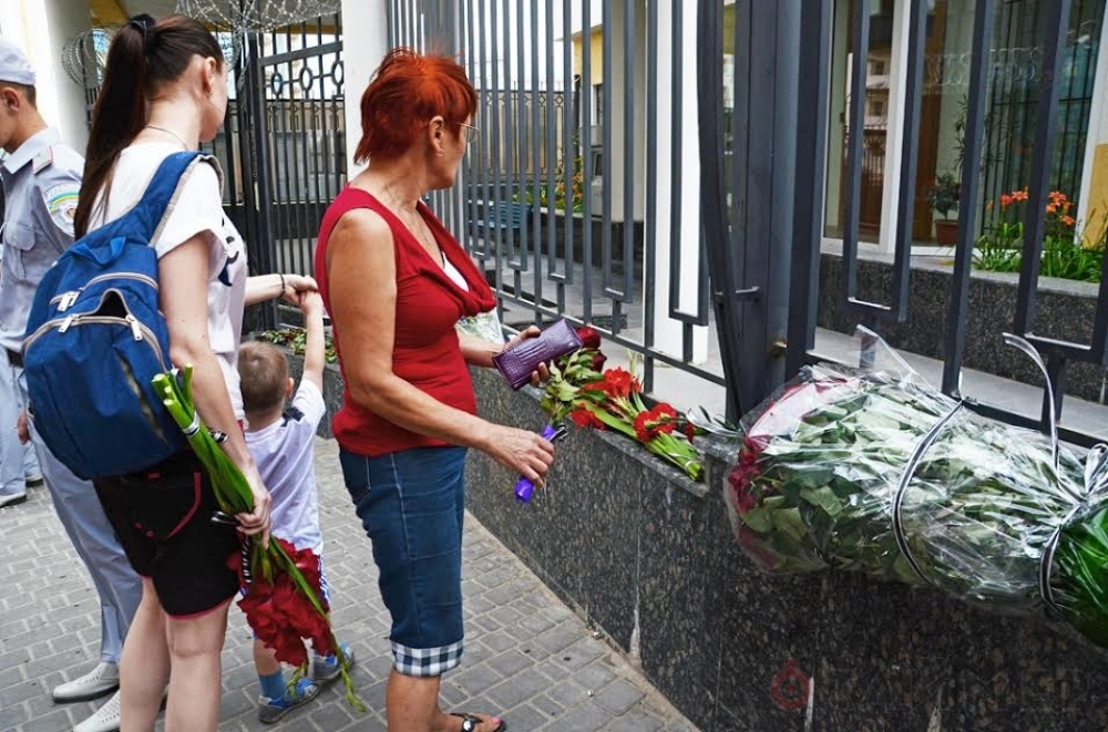 К зданию Генконсульства Российской Федерации в Одессе несут цветы и свечи — в знак памяти о жертвах разрушительной аварии в московском метро. Общественный порядок у здания охраняет большое количество сотрудников милиции, пишет «Таймер». Как известно, 15 июля в результате схода состава с рельсов на Арбатско-Покровской линии московского метро погибли 23 человека.