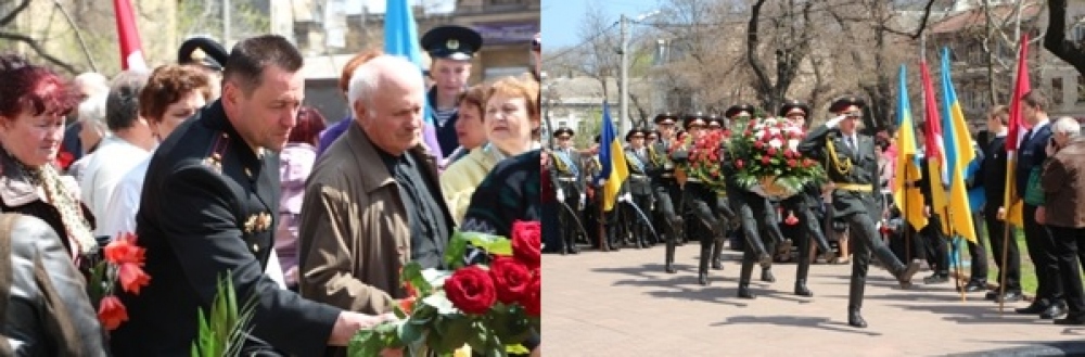 Горожане и представители власти возложили цветы к памятному знаку «Одесситам — чернобыльцам» на Александровском проспекте.