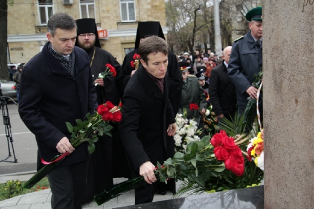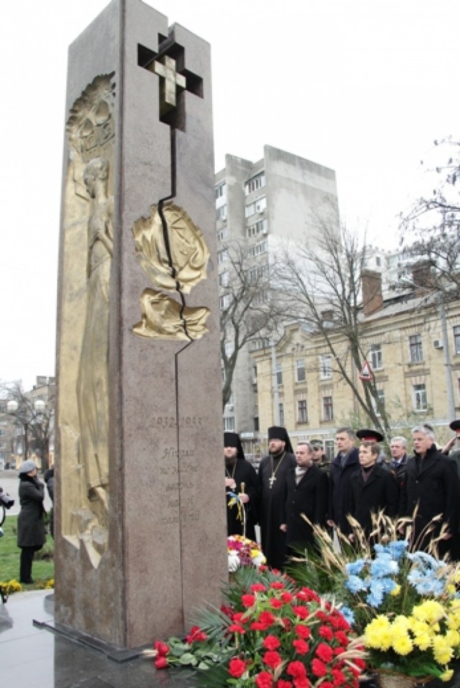 Сегодня, 22 ноября, на Лидерсовском бульваре в Одессе состоялся ритуал возложения цветов и композиций из ржаных и пшеничных колосков к памятному знаку жертвам Голодомора 1932-1933 годов. Как сообщает пресс-служба мэрии, в мероприятии приняли участие руководители города и области, представители районных администраций города, Военно-Морских Сил и Вооруженных Сил Украины, Пограничной службы, духовенство и общественность города. Присутствующие почтили память жертв голодоморов минутой молчания. Возложение традиционно сопровождалось оружейным салютом.