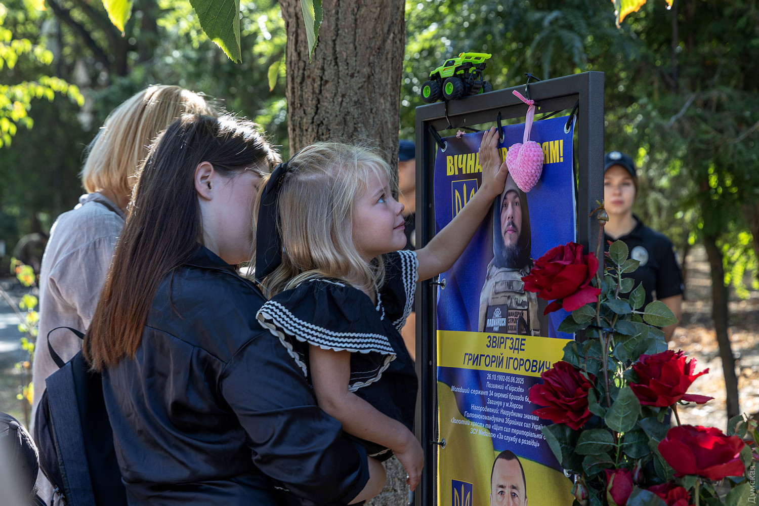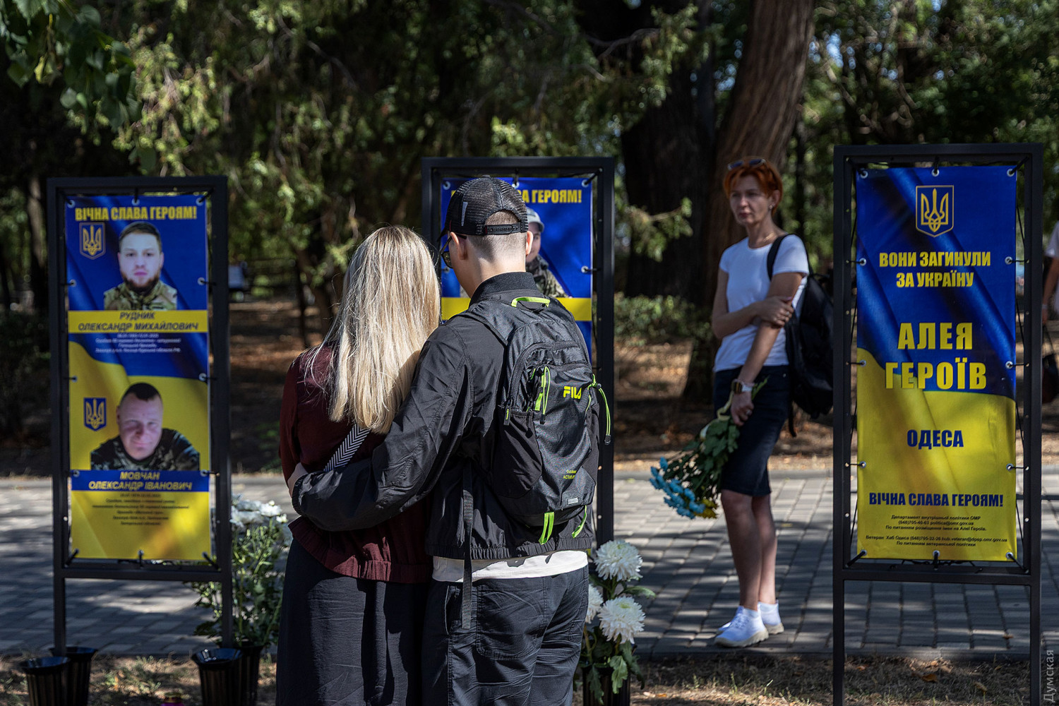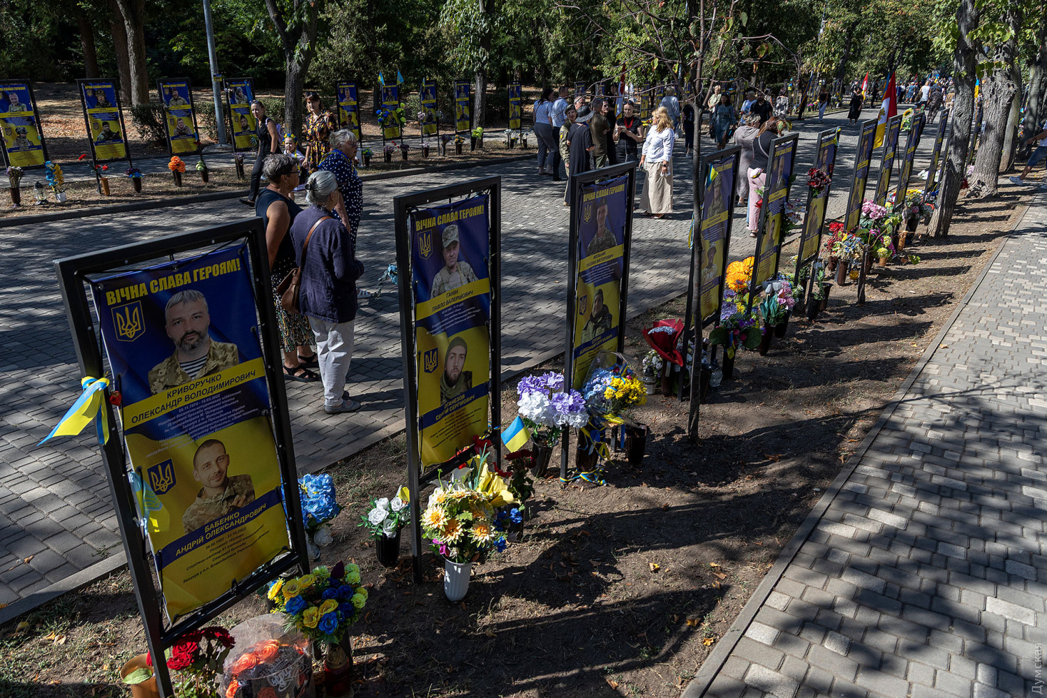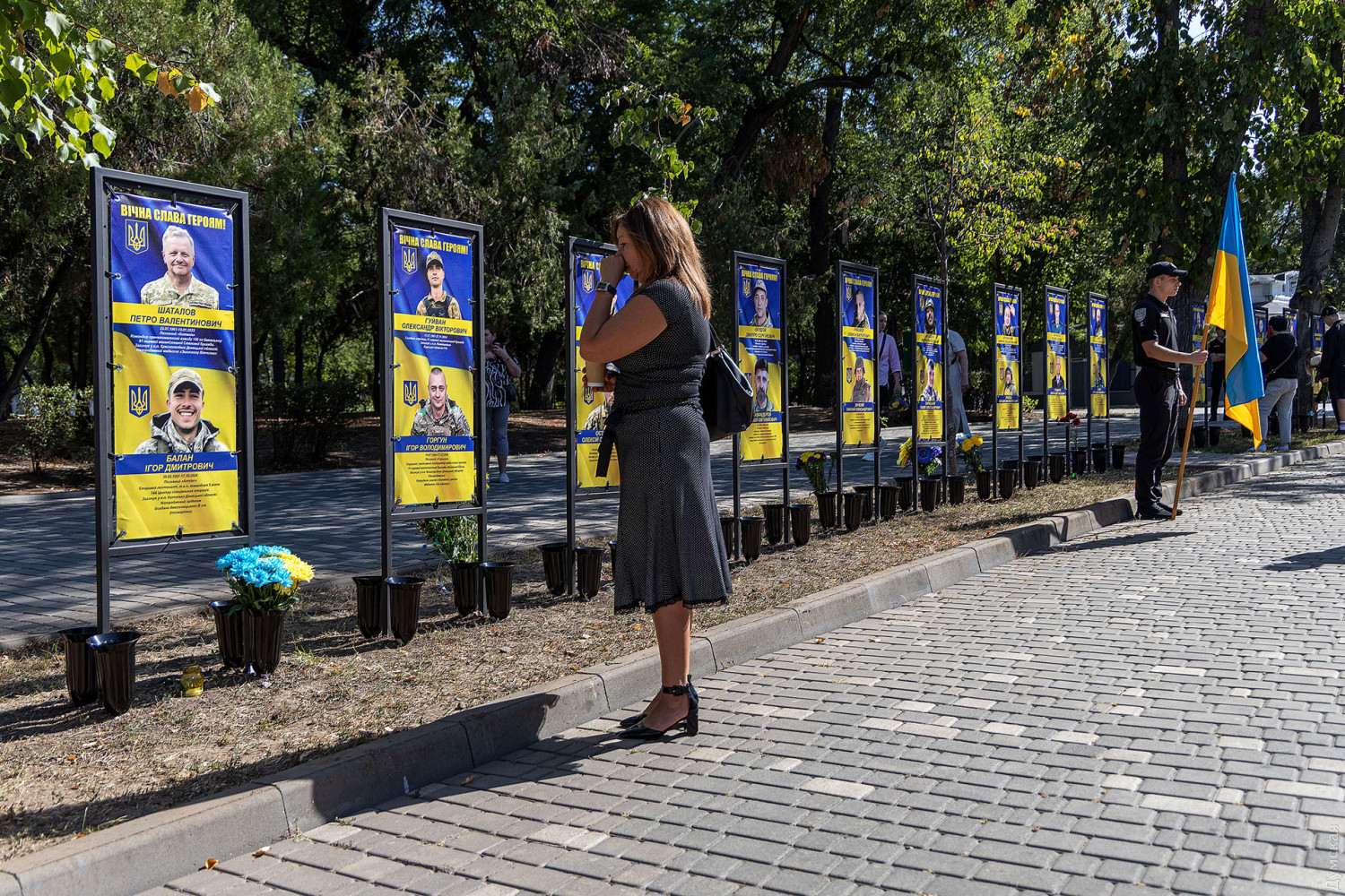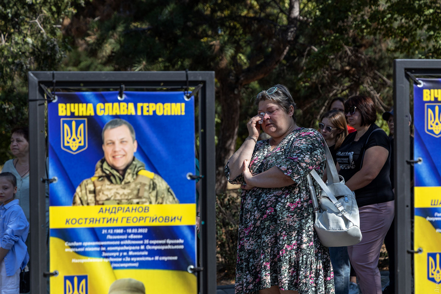 Пам'ять загиблих захисників України вшанували сьогодні, 29 серпня, на Алеї Героїв в одеському парку Шевченка. Цього року тут встановили 82 інформаційні стенди з іменами військовослужбовців. Загалом на меморіальному комплексі увічнено 552 герої. Рідні загиблих, не приховуючи сліз, ділилися спогадами про своїх близьких. Анастасія, дружина військовослужбовця 34-ї бригади берегової оборони Збройних сил України Григорія Звіргзде з позивним «Грінч», розповіла про свого чоловіка. «Гриша спочатку пішов у ТРО, потім перевівся до Херсона. Він займався дронами і загинув два місяці тому, 5 червня. Для мене важливо сьогодні бути тут, щоб його пам'ять всі могли вшанувати», — говорить Анастасія. До повномасштабного вторгнення герой працював шеф-кухарем, ніяк не був пов'язаний з військовою справою, але в лютому 2022 року, не роздумуючи, став на захист своєї сім'ї та країни. «У нього було дуже світле майбутнє, але він вирішив, що важливіше піти на війну, щоб захистити і своїх дітей, зокрема, — згадує вдова. — Він говорив: «Я не поїду, я залишуся тут». Це було його остаточне рішення, ніхто не міг вплинути на нього. Спогади найтепліші, він був світлою людиною, принциповою і чесною». У Анастасії залишилося двоє дітей — чотирирічна дівчинка і п'ятирічний хлопчик. Лілія, колишня дружина ще одного загиблого захисника, Олександра Ковальова, також розповіла про близьку людину, пам'ять про яку вона шанує сьогодні. За її словами, військовий завжди прагнув захищати країну, незважаючи на стан здоров'я. «Він був красивим, загинув як герой, — поділилася Лілія. — Дуже хороша, позитивна людина. Ми розлучилися, але завжди підтримували добрі стосунки. Його син Богдан дуже сильно його любив. Він дуже сильно сам хотів піти на фронт, коли перебував в Одесі, але за станом здоров'я його довго не брали. Мобілізувався в грудні минулого року, а вже в лютому нам повідомили, що він зник безвісти на Донецькому напрямку». СМЕРТЬ РОСІЙСЬКИМ ОКУПАНТАМ! Помітили помилку? Виділяйте слова з помилкою та натискайте control-enter |