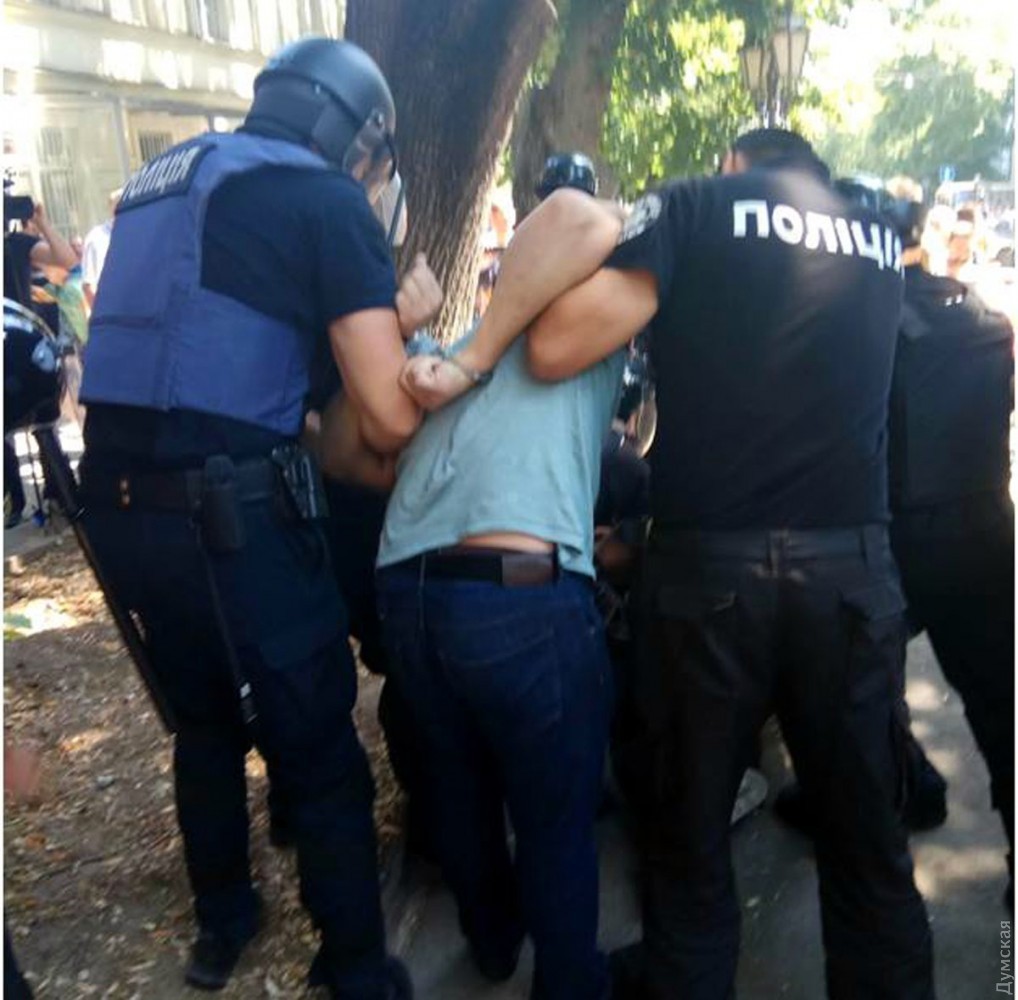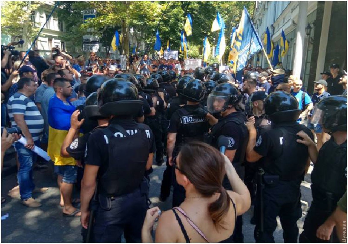 Сторонники и противники передачи здания несостоявшейся больницы скорой помощи частному медицинскому центру подрались под стенами прокуратуры Одесской области, на углу Пушкинской и Дерибасовской. Чтобы разнять дерущихся — людей «Кадорра» и представителей организации «Национальный корпус», — сотрудники полиции применили газ. Они задержали шестерых участников столкновения.