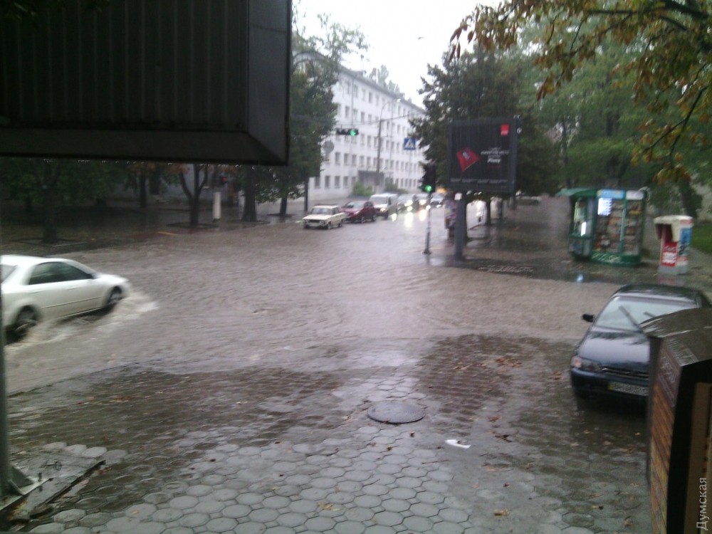 Из-за непрерывного дождя в Одессе оказались подтопленными многие улицы. Традиционно плавает Балковская и Среднефонтанская. Также затоплена Генуэзская, Тенистая, Ширяевский переулок.
