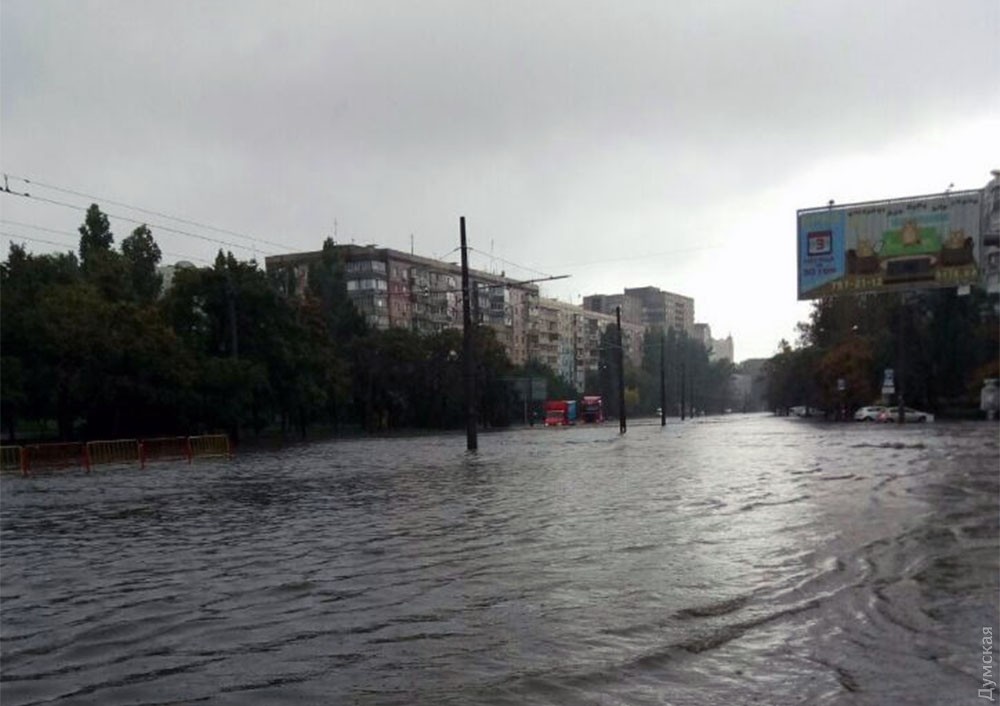 По данным пресс-службы патрульной полиции, оказались под слоем воды Промышленная, Химическая улицы, а также Люстдорфская дорога в районе Бреуса.
