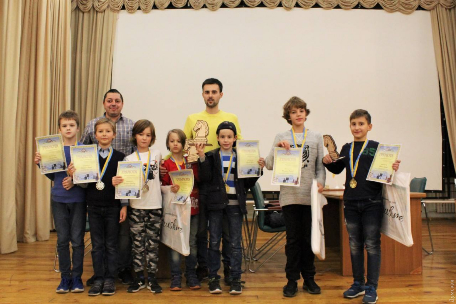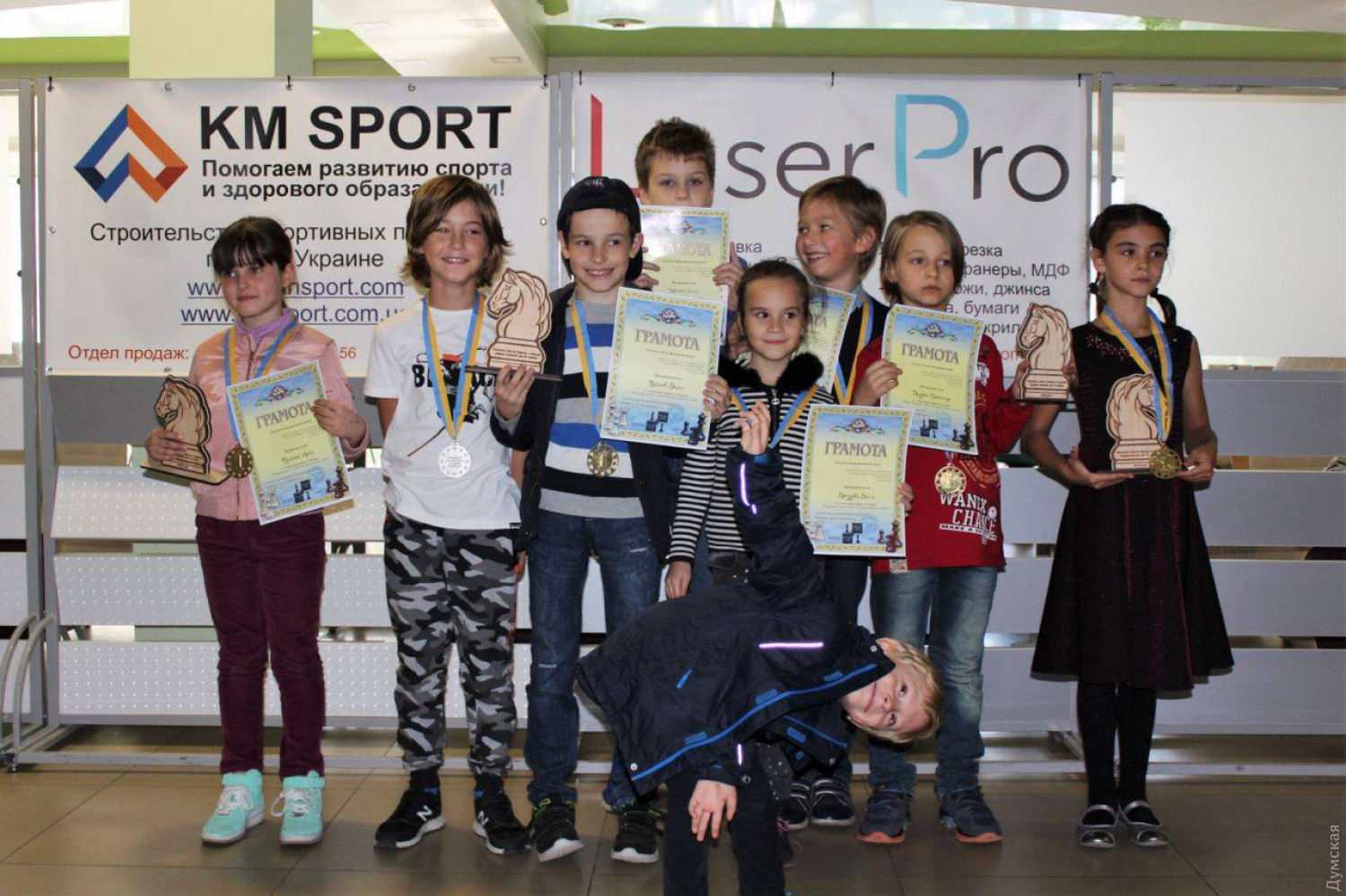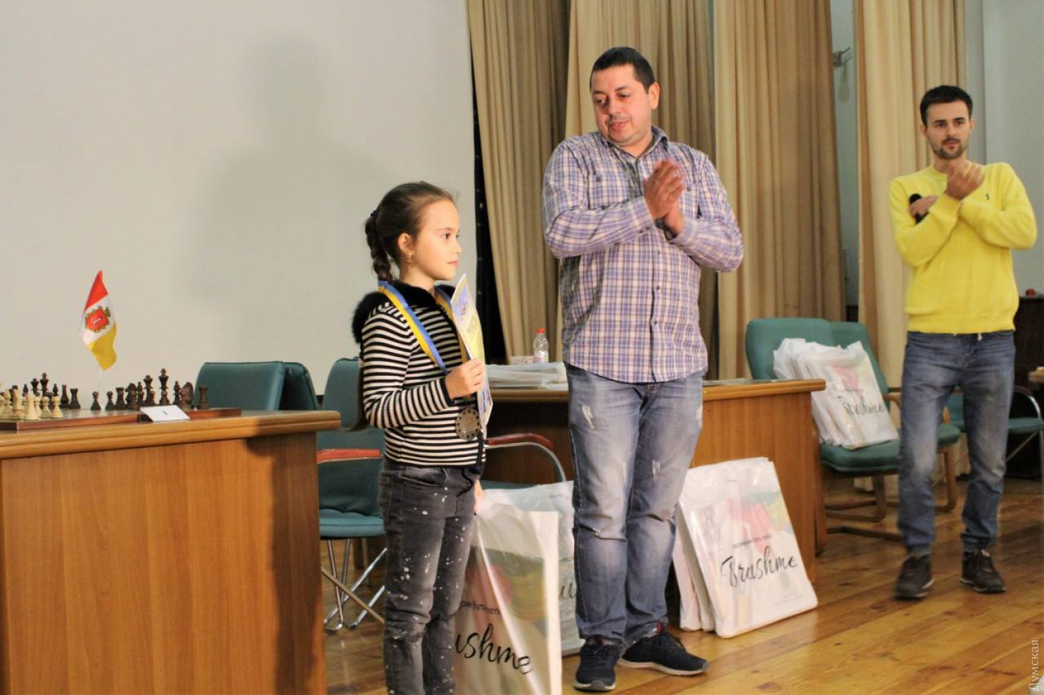 Завершился открытый детский чемпионат города по шахматам, который проходил в стенах санатория «Белая Акация» в течение трех дней. Вчера победителям торжественно вручали медали, грамоты и подарки. В соревнованиях приняли участие более 60 мальчиков и девочек в трех возрастных категориях — до 8, до 10 и до 12 лет. По итогам трехдневного соревнования в категории до 12 лет среди девочек золото взяла спортсменка из Южного — Таисия Ковалева. Девочке всего 8 лет, а в шахматы она играет с пяти. Победа в одесском чемпионате принесла юной спортсменке шестнадцатую награду. «Это было несложно — я уже в прошлом году побеждала в Одессе, а также привозила награды из Киева и Измаила», — говорит чемпионка. Общие итоги турнира следующие: девочки до 8 лет - 3 место — Диана Чуйкова, 2 - Дарья Дроздова, 1 - Алиса Пидгирняк; до 10 лет - 3 место — София Кулиш (Южный), 2 - Ника Завезион, 1 - Ольга Чупранюк; до 12 лет - 1 место — Таисия Ковалева (Южный); мальчики до 8 лет - 3 место — Давид Милакин, 2 - Кирилл Холодных, 1 – Александр Безейко; до 10 лет - 3 место — Владислав Гарский, 2 - Александр Григоренко, 3 - Даниил Поляков; до 12 лет - 3 место — Владимир Кулешов, 2 - Алексей Гончаренко, 1 - Артем Довгань. Как рассказал вице-президент Одесской городской федерации шахмат Евгений Демидюков, в целом борьба была бескомпромиссной, и, как свидетельствует итоговая таблица, очень плотной. «Не было какого-то явного фаворита до последнего тура. Мы очень рады, что получилась такая бескомпромиссная борьба», — отметил Демидюков. Напомним, чемпионат проходил при поддержке народного депутата Украины и президента городской федерации шахмат Алексея Гончаренко. СМЕРТЬ РОСІЙСЬКИМ ОКУПАНТАМ! Помітили помилку? Виділяйте слова з помилкою та натискайте control-enter |