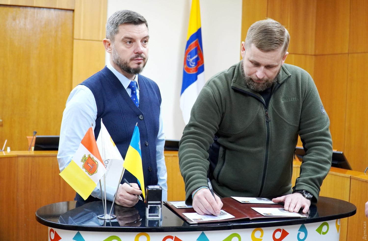 В Одессе погасили новую марку и конверт «Победного нового года!»Директор одесского областного управления «Укрпошты» Сергей Дрозд и глава областной военной администрации Максим Марченко торжественно погасили новую почтовую марку «Победного нового года!» и презентовали одноименные тематические конверты. В ОВА сообщили, что на марке и конверте изображена работа николаевской 11-классницы Валерии Михайловой, которая победила в онлайн-голосовании «Укрпошты». На эксизе изображена девушка, которая встречает Новый год в одиночестве, и украинский солдат, который проводит праздничную ночь на передовой. На конверте история продолжается – разлученная войной пара снова вместе и смотрит на праздничные салюты за окном. Марки выпущены тиражом 720 тысяч экземпляров на 120 тысячах страниц. «Патриотические марки «Укрпочты» имеют большую популярность. Это память о сопротивлении украинцев во время войны. А филателистическая продукция — один из символов государства, который представляет нашу страну в мире. Почтовые марки и конверты — тоже являются визитной карточкой Украины и своеобразным элементом патриотизма, потому что на этих марках, в иллюстрациях, отчеканивается наша история, и следующие поколения и мировое сообщество должны ее знать. Тем более, что сейчас украинские марки находят своих ценителей во всем мире, потому что их выделяет, среди филателистической продукции других стран, неповторимый национальный колорит и дух борьбы за свою независимость», — отметил начальник ОВА Максим Марченко. СМЕРТЬ РОССИЙСКИМ ОККУПАНТАМ! Заметили ошибку? Выделяйте слова с ошибкой и нажимайте control-enter