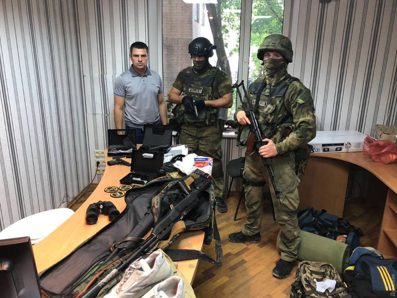 ОБНОВЛЕНО В 11:46. По данным полиции, боевиков привезли из Киева и Ровно, один из них оказался гражданином РФ. Заказал рейдерский захват некий народный депутат. Кроме оружия, у задержанных изъяли наркотики.