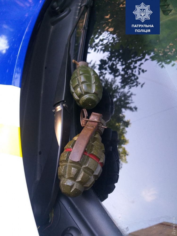 Патрульные полицейские задержали пьяного одессита, у которого в карманах оказались две гранаты Ф-1. Как сообщили в полиции, правоохранители убедили фигуранта достать боеприпасы и положить их на капот служебного автомобиля, после чего надели на него наручники. Отмечается, что экипаж приехал на вызов о домашнем насилии. Фигурант сообщил, что в телефонном разговоре ему угрожает жена, с которой он не проживает. Когда же приехали полицейские, он продемонстрировал им гранаты. На место прибыли взрывотехники и сотрудники СБУ, гранаты передали на экспертизу. СМЕРТЬ РОСІЙСЬКИМ ОКУПАНТАМ! Помітили помилку? Виділяйте слова з помилкою та натискайте control-enter Новини по цій темі: 29 липня 2025: В Усатово Одеської області сталася перестрілка: поліція працює на місці (відео, оновлено) 28 липня 2025: П'яний на "Ягуарі" або гіпертонік? Звільнений топ-посадовець одеської поліції хоче повернутися на службу 19 червня 2025: Дівчинку, яку шукали сотні одеситів, знайшли вбитою: поліція працює з чоловіком, ймовірно причетним до загибелі 27 травня 2025: Увели гектар в університету: на Одещині засудили земельних аферистів, але без посадки і Хвоста |