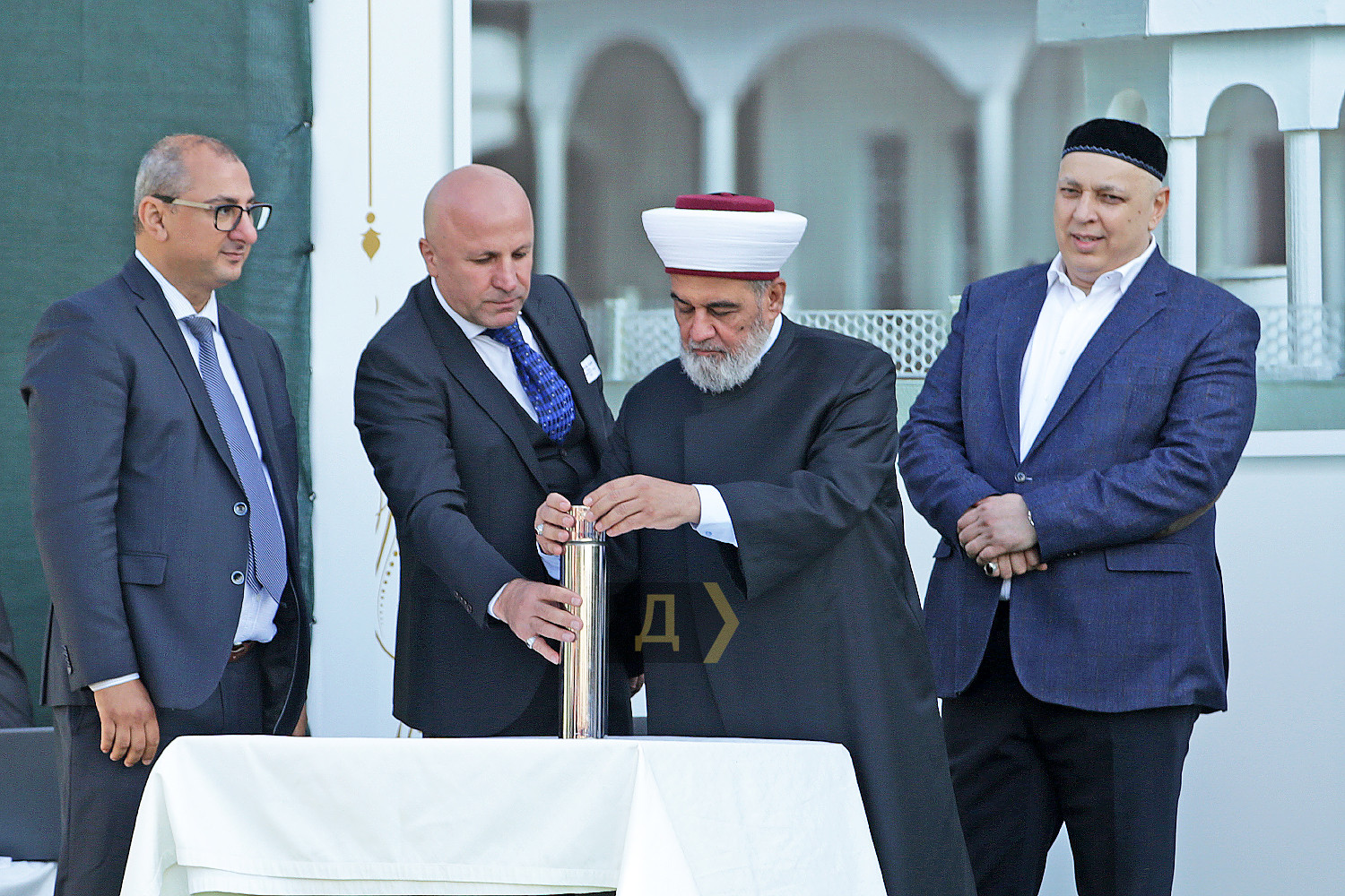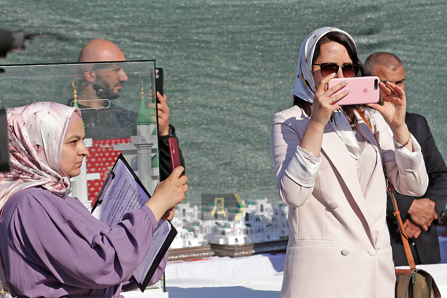 После закладки капсулы памяти все почетные гости получили в подарок уменьшенные копии будущей мечети.