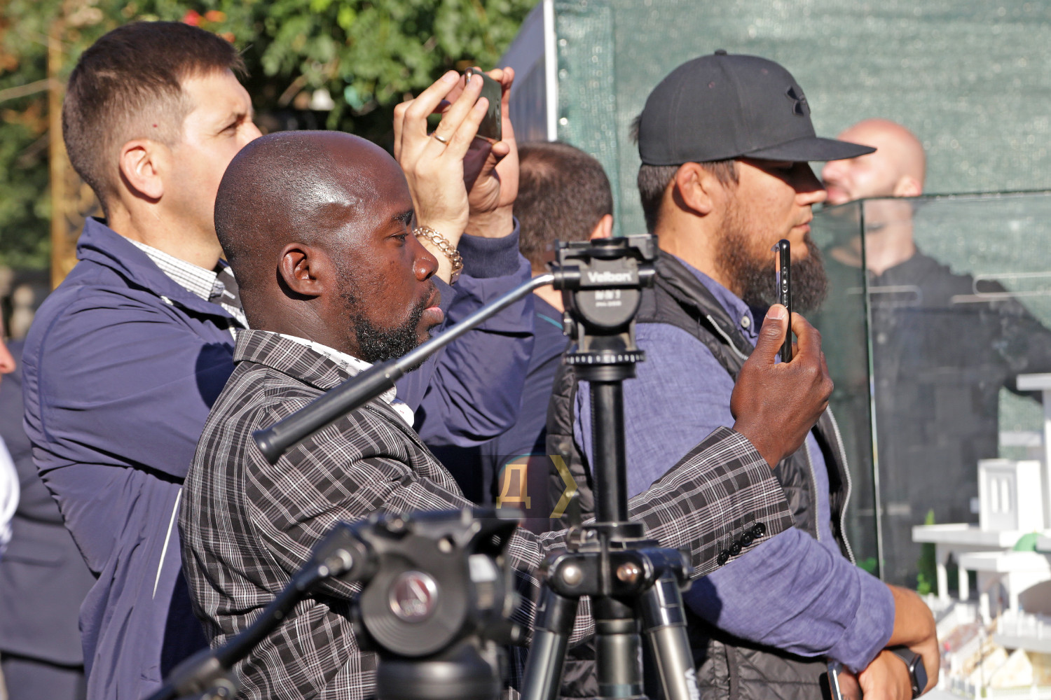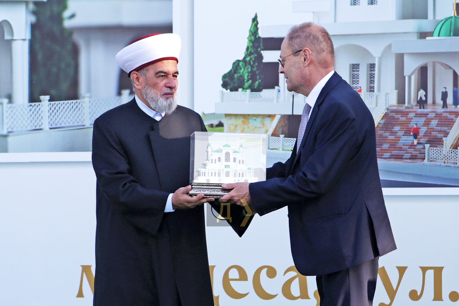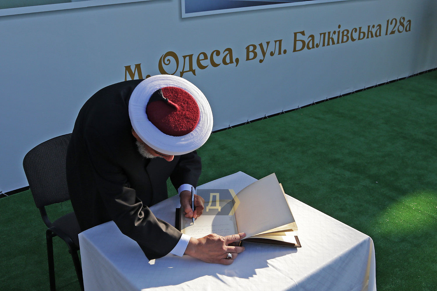 В торжестве приняли участие верховный муфтий Украины Ахмед Тамим, представители городской и областной власти, а также послы ряда исламских государств, в том числе шиитских — например Ирана, хотя мечеть строят сунниты.