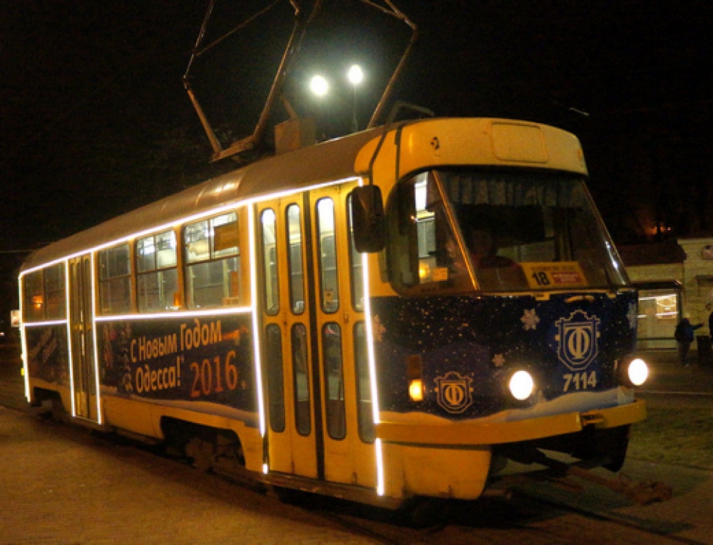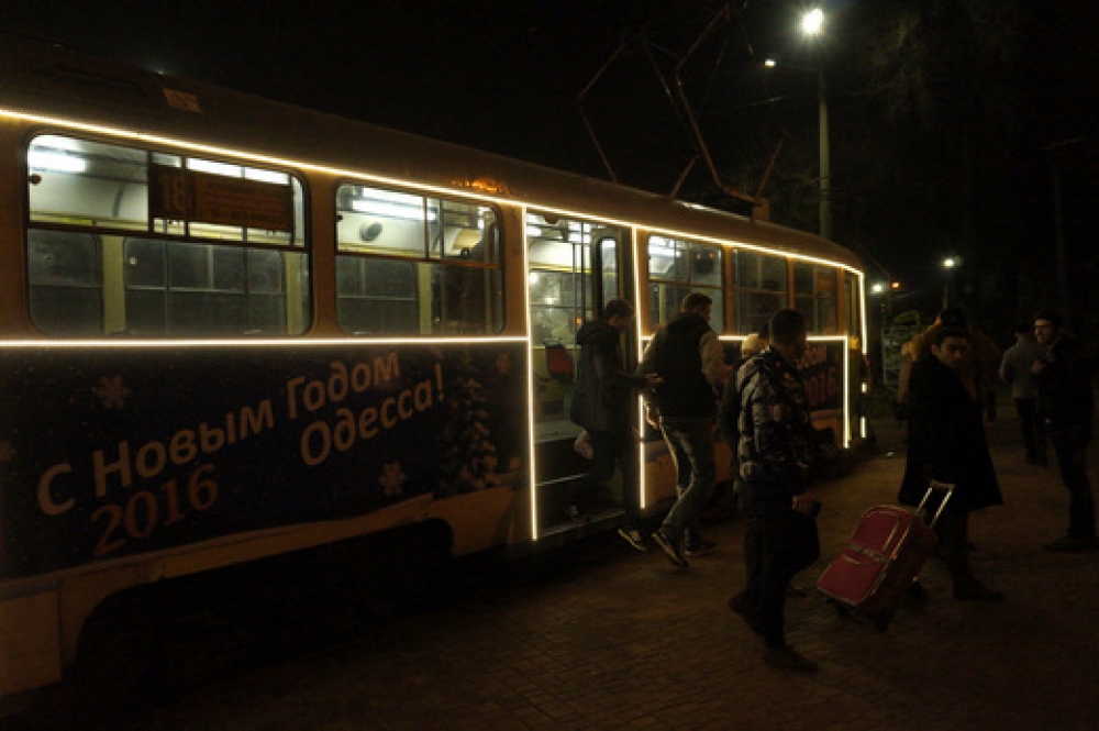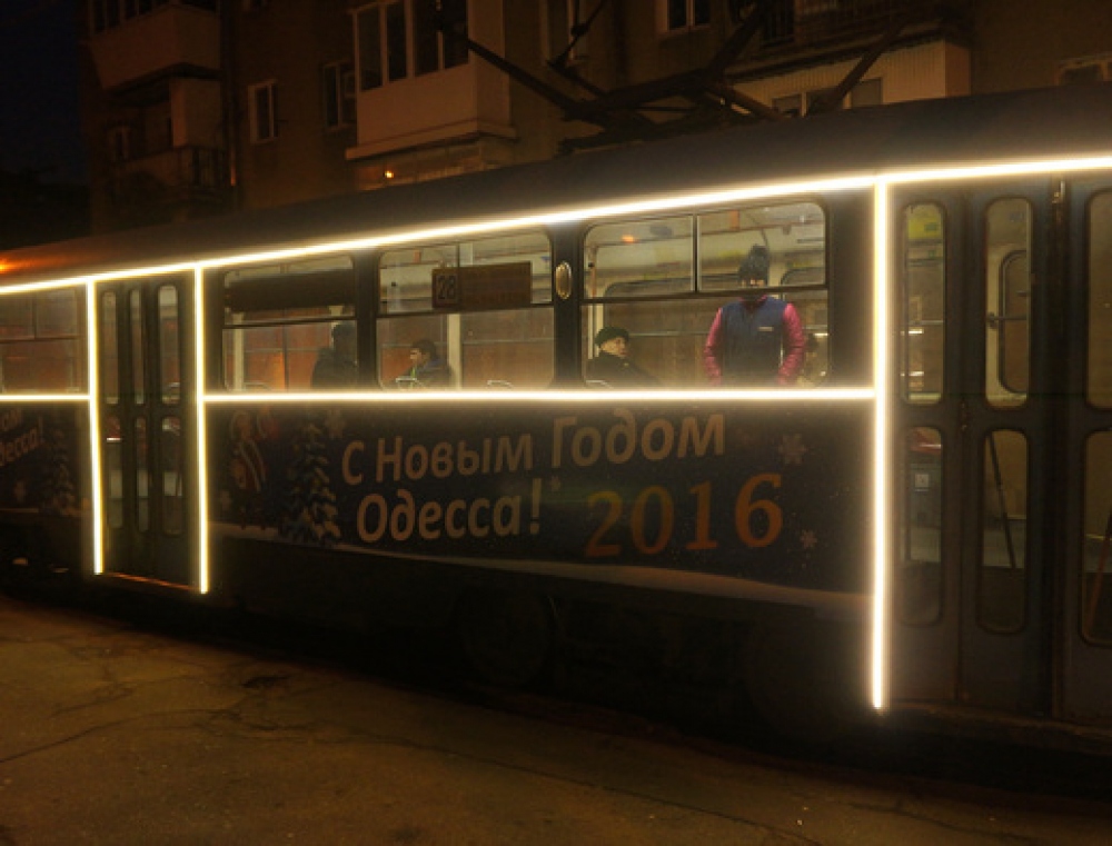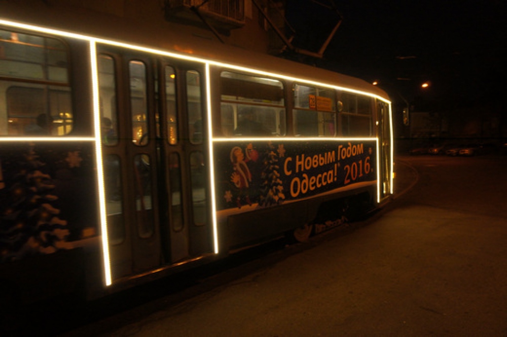 К новогодним праздникам в Одессе на маршруты выходят празднично украшенные трамваи и троллейбусы. Как сообщает пресс-служба мэрии, на вагонах, кроме тематических рисунков и поздравлений с праздниками, есть яркая светодиодная подсветка.