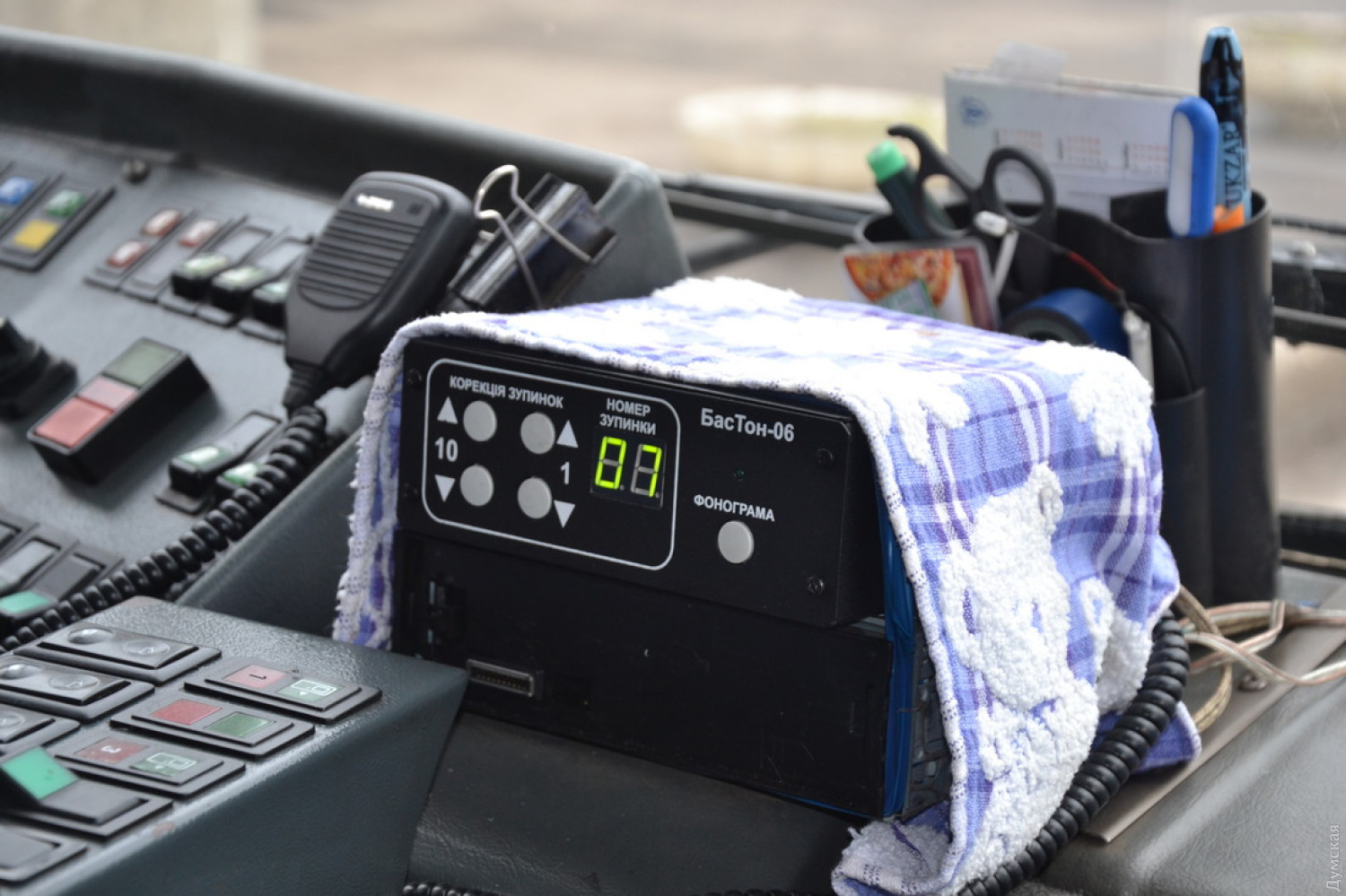 Кроме того, вынесенный наружу динамик оповещает стоящих на остановке людей о том, что за троллейбус подъехал и куда он следует.