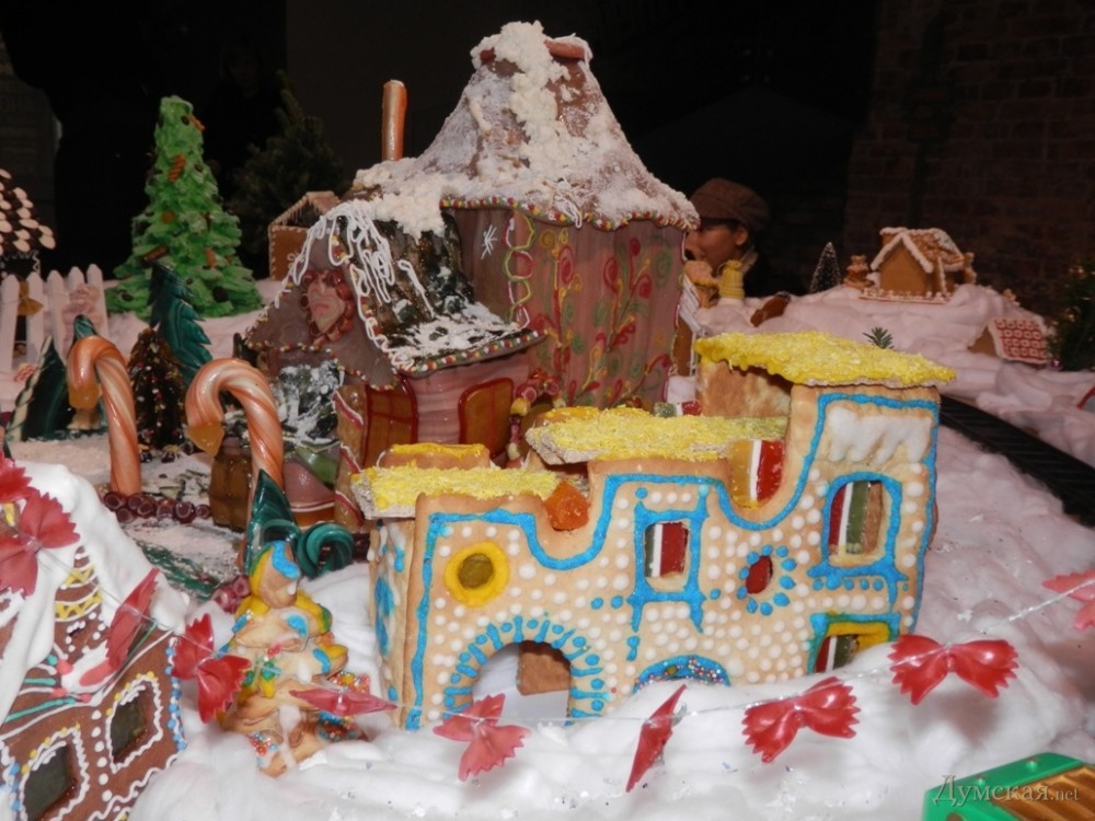 В арт-центре Александра Коробчинского на Пушкинской улице открылась первая в бывшем Советском Союзе выставка пряничных домиков. Более двадцати кондитерских шедевров из пряников, карамели и шоколада смастерили лучшие кулинары Одессы.