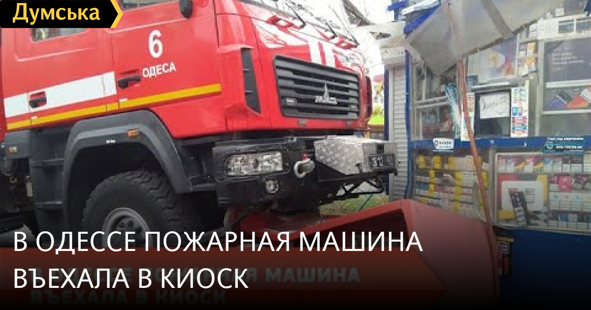 В результате приключения никто не пострадал. По данным патрульной полиции, столкновение случилось из-за не предоставления водителем Hyundai преимущества в движении пожарным, которые ехали с включенными световыми и звуковыми спецсигналами. После чего МАЗ, по инерции, продолжил движение и наехал на торговую точку. СМЕРТЬ РОССИЙСКИМ ОККУПАНТАМ! Заметили ошибку? Выделяйте слова с ошибкой и нажимайте control-enter Думская ТВ. Сюжеты: