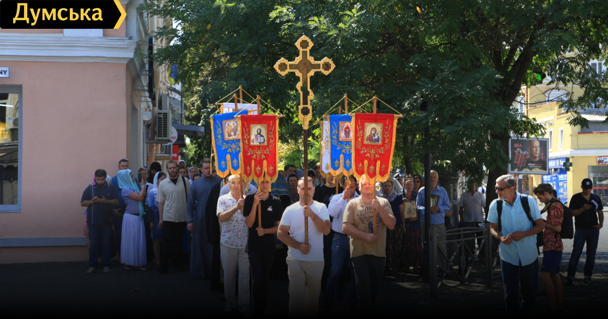У Преображенского собора состоялся молебен. В толпе при этом раздавали листовки, осуждающие вчерашний «Одесса Прайд» и предупреждающие о происках коварных американцев.