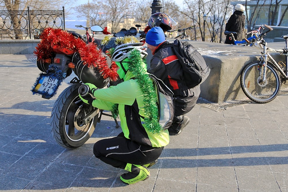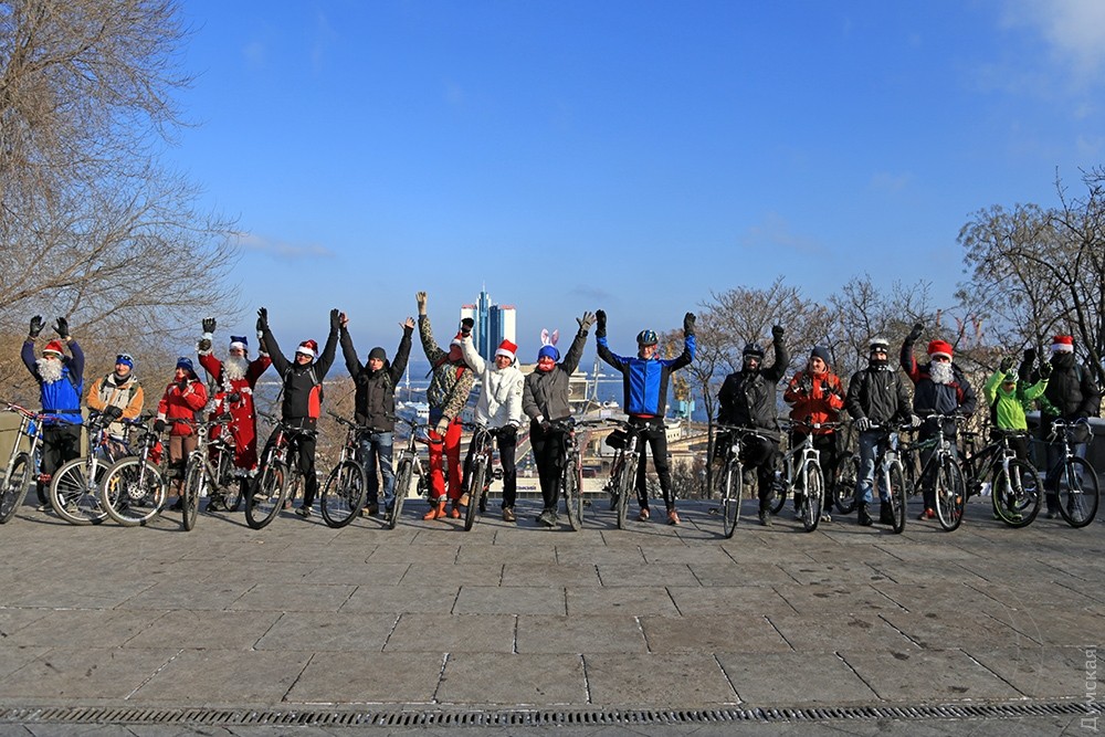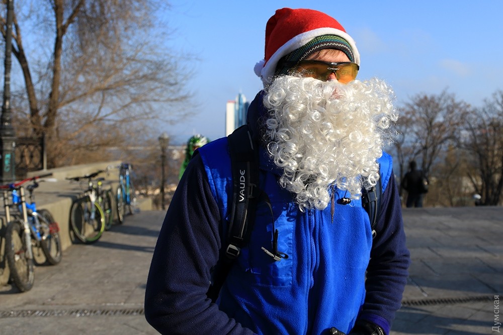 Перед отправлением организатор Юрий Праздников дал интервью, после чего педали закрутились по часовой стрелке. Несколько спортсменов, облаченных в наряды Дедов Морозов и Санта Клаусов, дарили детям сладости и игрушки. Все остались довольны, и крепкий одесский морозец никому не помешал.