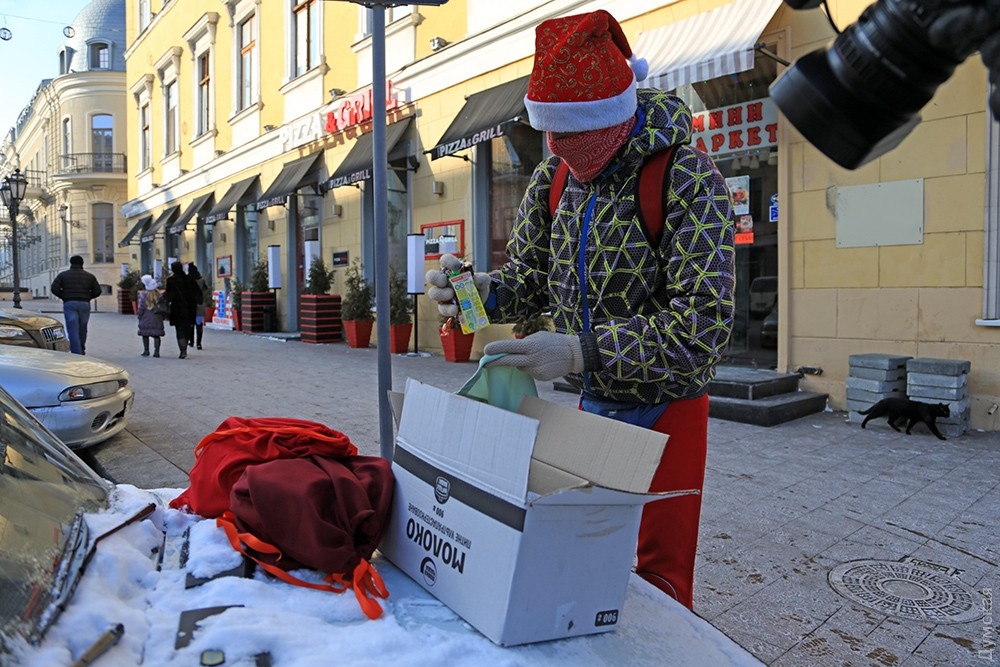 Акция была организована благотворительным фондом «Добрый Самарянин». Частично подарки распределили по медицинским учреждениям города, а оставшееся раздали на улицах велосипедисты. Заезд стартовал примерно в 13:00 от Дюка.