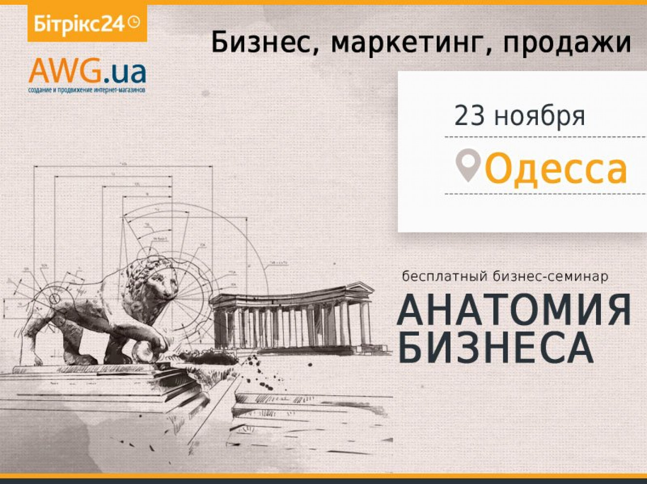 В Одессе пройдет бесплатный семинар о бизнесе, маркетинге и продажах (на правах рекламы)23 ноября в Одессе пройдет конференция «Анатомия бизнеса», где предприниматели смогут получить действующие инструменты для собственников бизнеса. Владельцы и ТОП-менеджеры из компаний VISOTSKY CONSULTING, BogushTime, АМР Agency, Business Inside, BusinessForward в Украине, «Перформія Україна», «Ольшанский и партнеры», Netpeak, eSputnik, «Битрикс24» и AWG поделятся практическими знаниями из личного опыта и инструментами создания и развития клиентоориентированного бизнеса; расскажут, как увеличивать продажи и быть успешными. Мероприятие проводится Бесплатно и только один день. Предварительная регистрация обязательна. Зарегистрироваться можно по ссылке. Количество мест ограничено. «Анатомия бизнеса» — это площадка для обновления и дополнения своих знаний, обмена опытом, получения инсайтов и знакомства с трендами. На конференции вы узнаете: Конференция пройдет в «Терминале 42« на Ришельевской, 33. Дополнительная информация: СМЕРТЬ РОСІЙСЬКИМ ОКУПАНТАМ! Помітили помилку? Виділяйте слова з помилкою та натискайте control-enter |