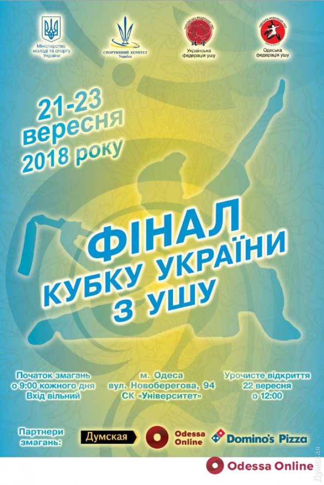 22-23 сентября в Одессе пройдет финал Кубка Украины по спортивному ушу (таолу), который проводит Украинская федерация ушу под патронатом Министерства молодежи и спорта Украины. Локальный организатор — Одесская федерация ушу. В соревнованиях участвуют 17 команд из 14 регионов Украины, а также гости из Беларуси. Всего — около 400 спортсменов разных возрастов. Начало соревнований 22 и 23 сентября в 9 часов утра. Торжественная церемония открытия — 22 сентября в 12:00. Место проведения — спорткомплекс «Университет» (ул. Новобереговая, 94). Вход свободный. СМЕРТЬ РОССИЙСКИМ ОККУПАНТАМ! Заметили ошибку? Выделяйте слова с ошибкой и нажимайте control-enter |