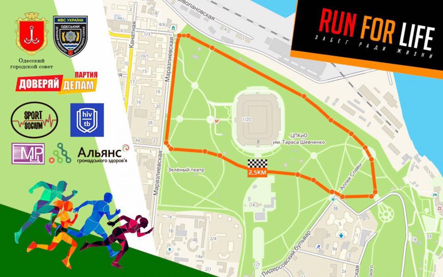 В первое воскресенье октября в Одессе пройдет масштабное и весьма полезное мероприятие для любителей бега. Как сообщает спортивный корреспондент «Думской», 1 октября в парке Шевченко состоится «Забег ради жизни». Любителям бега предложено преодолеть любую из понравившихся дистанций: 2,5 км, 5 км или 10 км. Юные спортсмены могут выбирать между 500 метрами и 1000 метрами, причем, дети до 16-ти лет участвуют бесплатно, взрослые же вносят регистрационный взнос в размере 60-ти гривен. Как рассказал «Думской» главный организатор «Забега ради жизни» Виталий Гилевич, все собранные средства пойдут на закупку наркозно-дыхательного аппарата Leon Plus для Детской клинической больницы №3 (реанимационное отделение). Регистрация участников продолжается на ЭТОМ сайте. Начало мероприятия – в 10:00. Сбор участников – в парке Шевченко возле касс стадиона «Черноморец» («Ракушка»). «Думская» обязательно расскажет своим читателям о данном мероприятии, а пока предлагаем ознакомиться со схемой забега. СМЕРТЬ РОСІЙСЬКИМ ОКУПАНТАМ! Помітили помилку? Виділяйте слова з помилкою та натискайте control-enter |