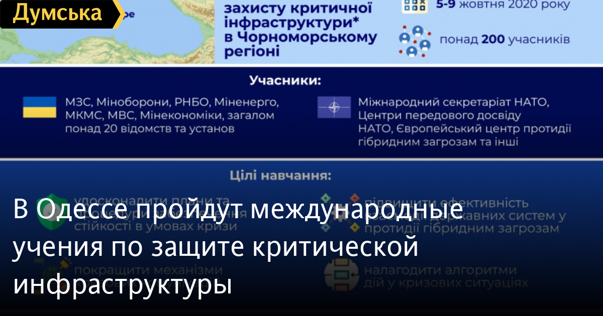 В начале октября этого года в Одессе пройдут международные учения «Нерушимая стойкость-2020» (Coherent Resilience 2020). Украинские военные под руководством коллег из НАТО будут учиться защищать объекты критической инфраструктуры — предприятия и учреждения энергетики, химической промышленности, транспорта, телекоммуникаций и коммунального хозяйства, которые являются стратегически важными для экономики и безопасности страны. Соответствующий документ был подписан вчера в штаб-квартире НАТО в Брюсселе между заместителем Генерального секретаря НАТО по политическим вопросам и политике безопасности Беттиной Каденбах и вице-премьер-министром по вопросам европейской и евроатлантической интеграции Дмитрием Кулебой. Учения пройдут в нашем городе с 5 по 9 октября. Около 200 участников из Украины и стран НАТО будут отрабатывать алгоритмы действий в кризисных ситуациях, которые могут возникнуть в Черноморском регионе, чтобы своевременно и грамотно реагировать на кибератаки, нападения на порты, захват транспортных путей и другие угрозы. С украинской стороны в них примут участие более 20 госучреждений — Совет национальной безопасности и обороны Украины (СНБО), Министерство обороны, Министерство иностранных дел, Министерство внутренних дел и органы системы МВД, Министерство энергетики и защиты окружающей среды, Министерство развития экономики, торговли и сельского хозяйства, Министерство инфраструктуры, Министерство культуры, молодежи и спорта и другие. Также присоединятся НАК «Нафтогаз Украины» и Институт стратегических исследований. Альянс предоставит представителей центров передового опыта НАТО (в частности — по энергобезопасности, кибербезопасности и морской безопасности), представительства НАТО в Украине. Также присоединится Европейский центр опыта по противодействию гибридным угрозам. Это уже не первые совместные учения Украины и НАТО по защите инфраструктуры. В 2017 году украинские органы власти вместе с представителями НАТО также отрабатывали взаимодействие по защите энергетических объектов. СМЕРТЬ РОССИЙСКИМ ОККУПАНТАМ! Заметили ошибку? Выделяйте слова с ошибкой и нажимайте control-enter |