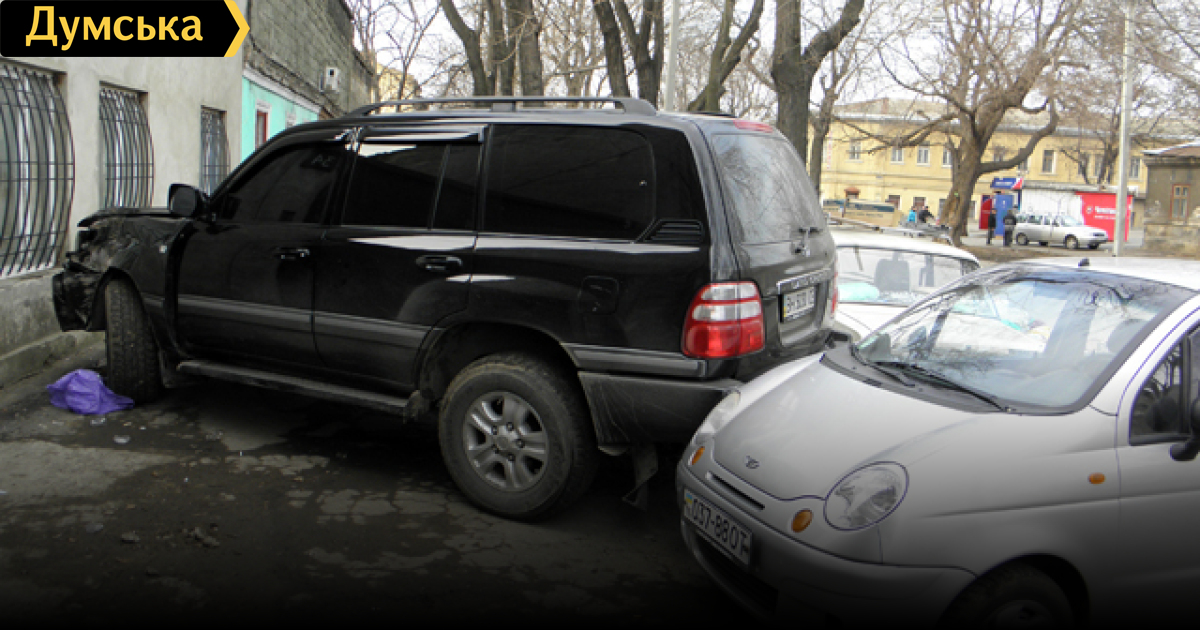 Черный внедорожник разбил "Дэу Матис" и переехал человека на Молдаванке. Фото очевидца