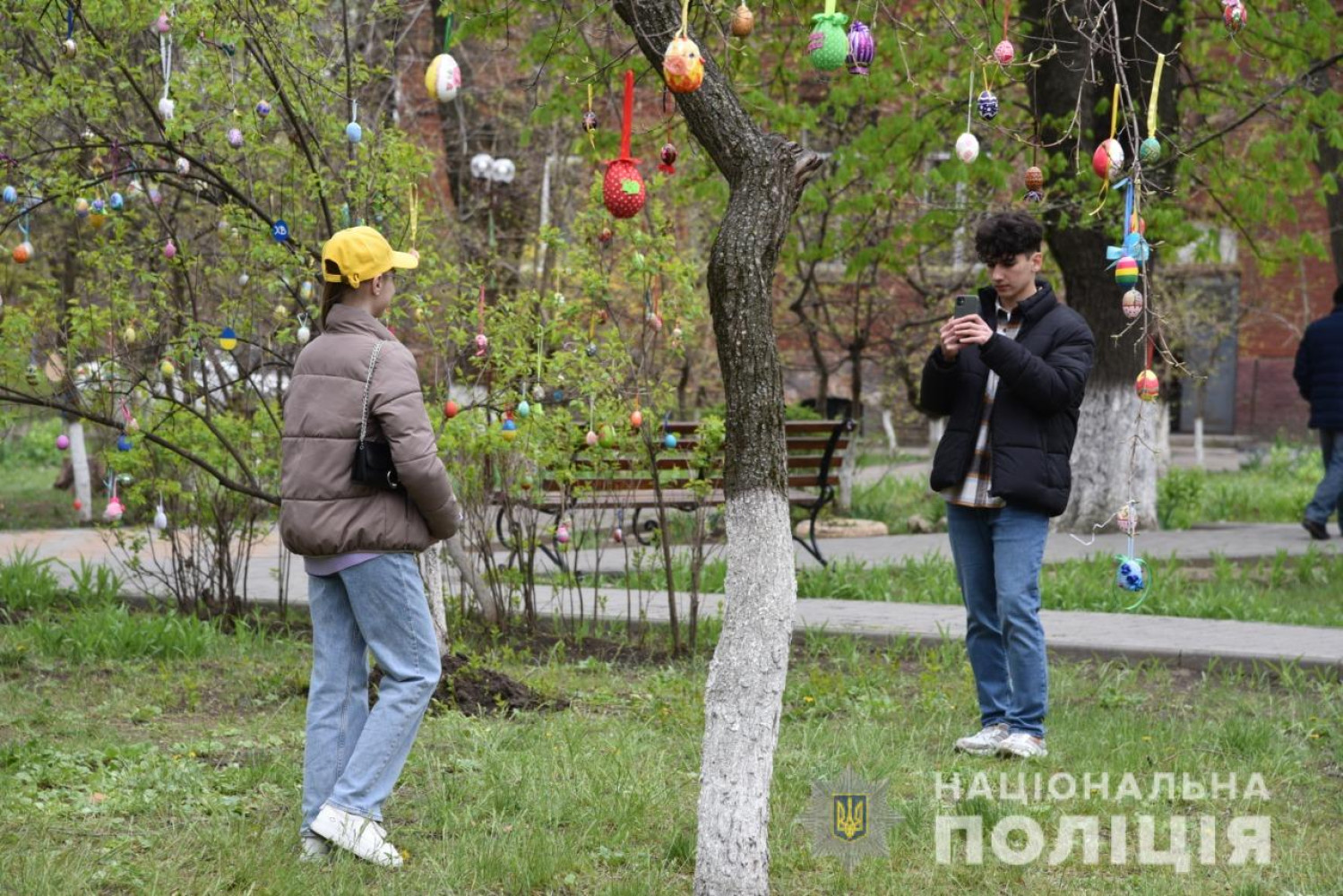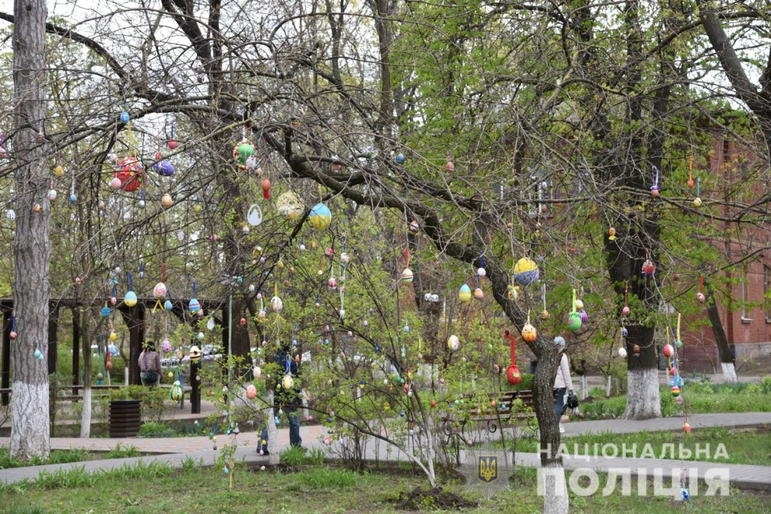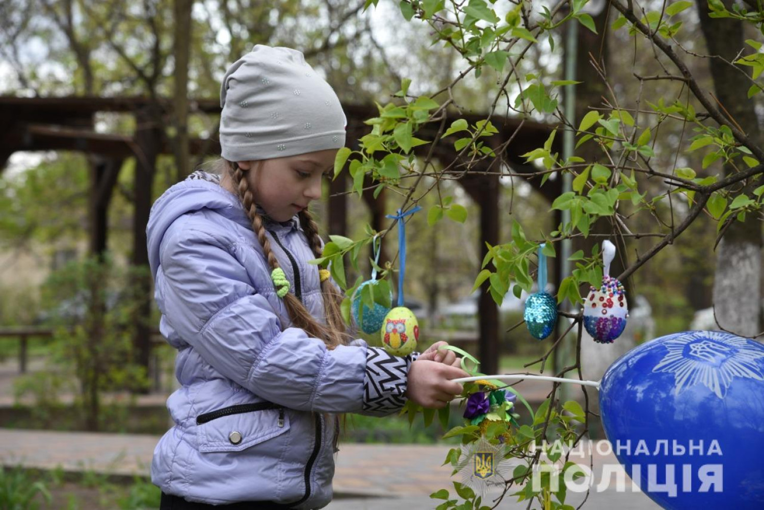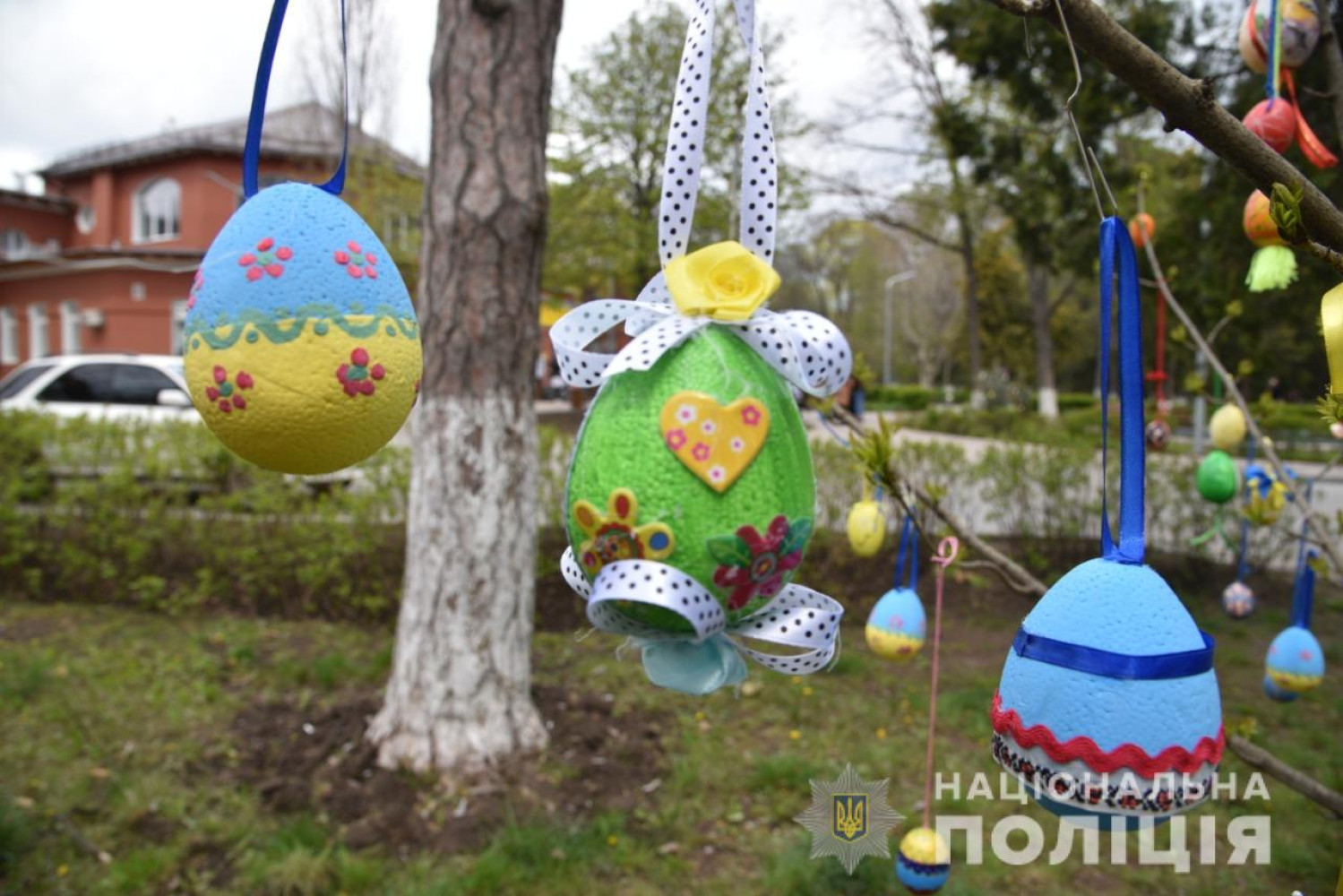 В Одессе к Пасхе ювенальные полицейские вместе с детьми украшали деревья в больнице на Воробьева.