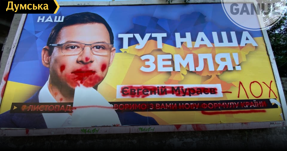 Билборд с изображением пророссийского экс-нардепа, лидера партии «Наши» и владельца телеканала «Наш» Евгения Мураева испортили в районе Пересыпи в Одессе.