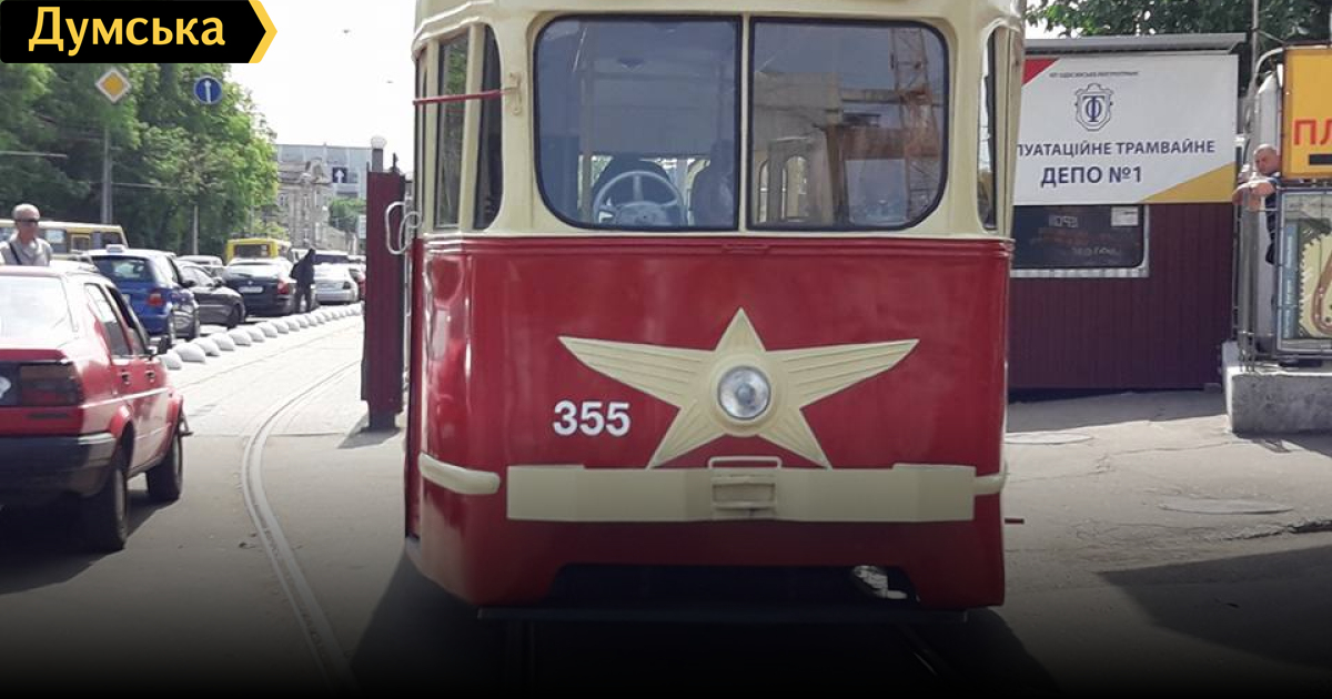 Одесский вагон был построен в 1952 году. В 1971-м его переделали в буксир. В 2013-м трамвай восстановили в первоначальном виде. При этом под множеством слоев старой краски реставраторы нашли герб СССР с 16-ю республиками (с Карело-Финской, которую в 1956-м включили в состав РСФСР).