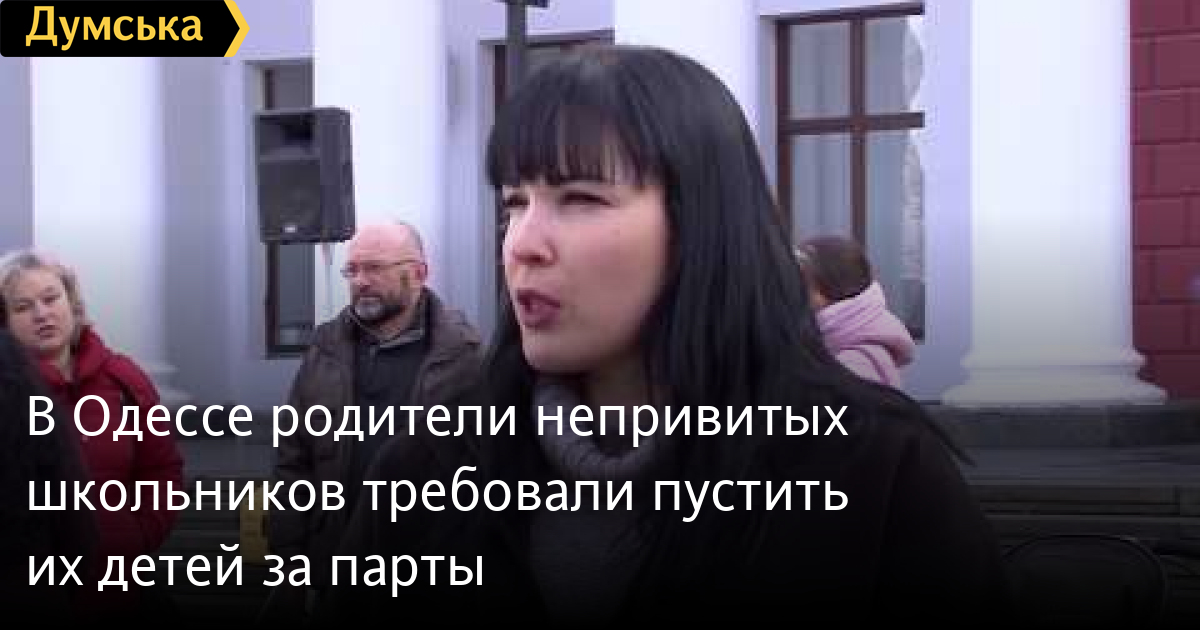 Митинг под горсоветом. В Одессе родители непривитых от кори школьников требовали пустить их детей учиться.