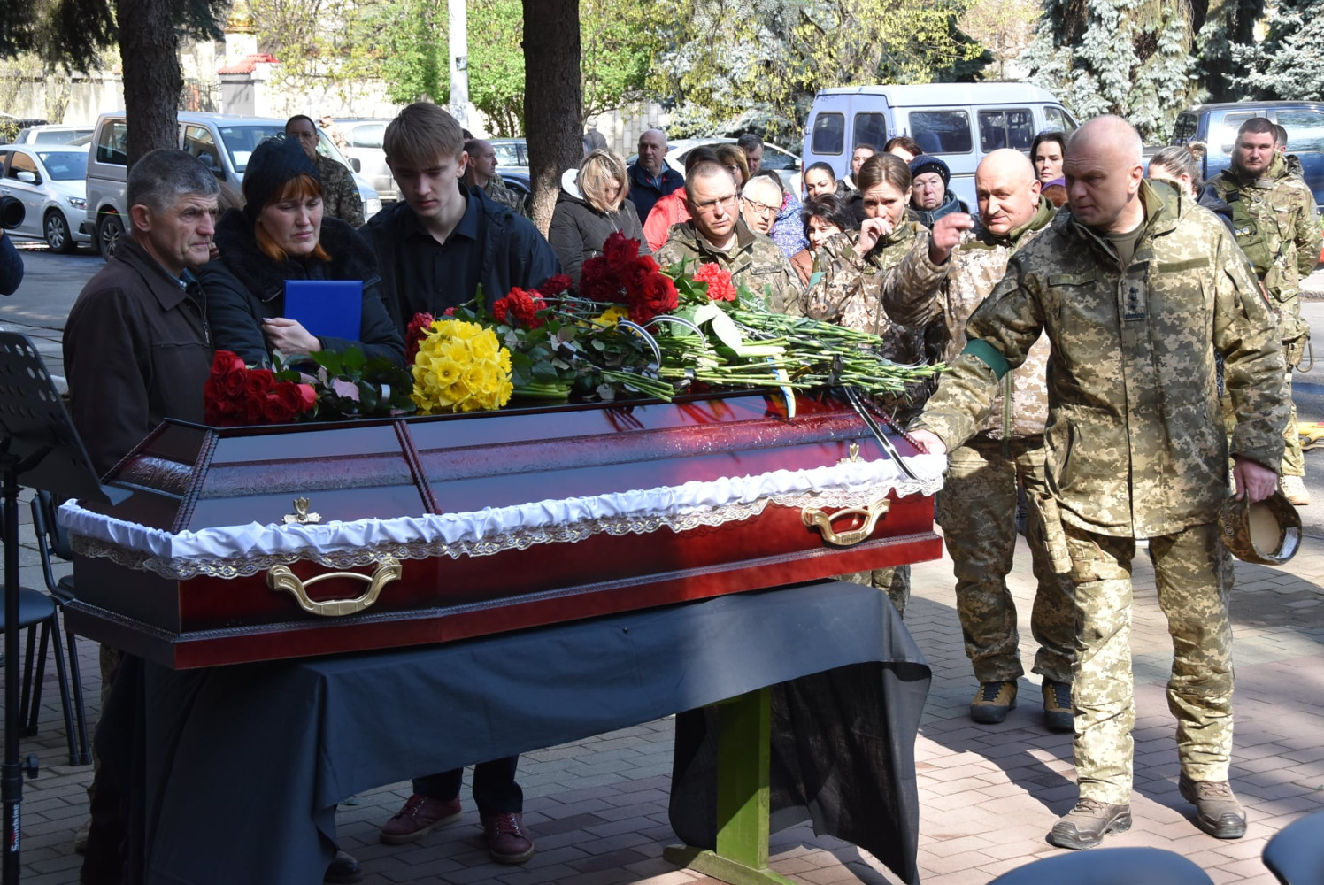 Прощание с двумя защитниками Украины, которые героически отдали свои жизни в борьбе с оккупантами, состоялось в Одессе 14 апреля. Под музыку в исполнении военного оркестра в последний путь провели полковников Василия Телегуза и Николая Спендовского. Гробы были покрыты Государственными флагами Украины, которые затем вместе с Грамотами скорби и уважения от Главнокомандующего Вооруженными силами Украины передали женам офицеров. Герои получили смертельные ранения, когда выполняли боевое задание под вражескими обстрелами в окрестностях села Снигиревка Николаевской области 21 марта. Оба офицера служили в вооружении логистики оперативного командования «Юг». Попрощаться с защитниками Украины в одесский Дом офицеров пришли руководство оперативного командования, военнослужащие, родные и близкие. 57-летнего Василия Телегуза похоронят в городе Сторожинец Черновицкой области, а 52-летнего Николая Спендовского – в городе Жмеринка Винницкой области. СМЕРТЬ РОСІЙСЬКИМ ОКУПАНТАМ! Помітили помилку? Виділяйте слова з помилкою та натискайте control-enter |