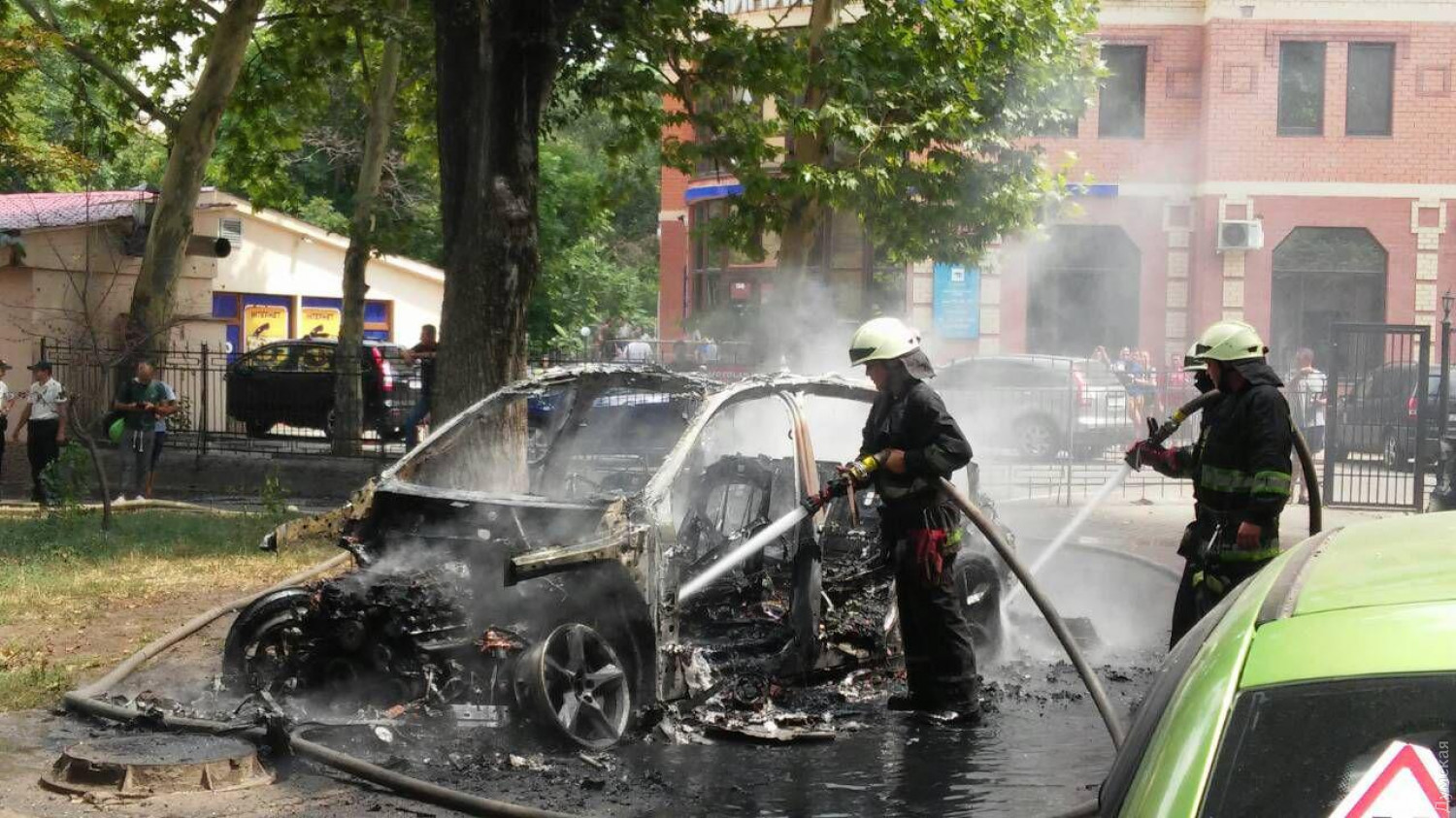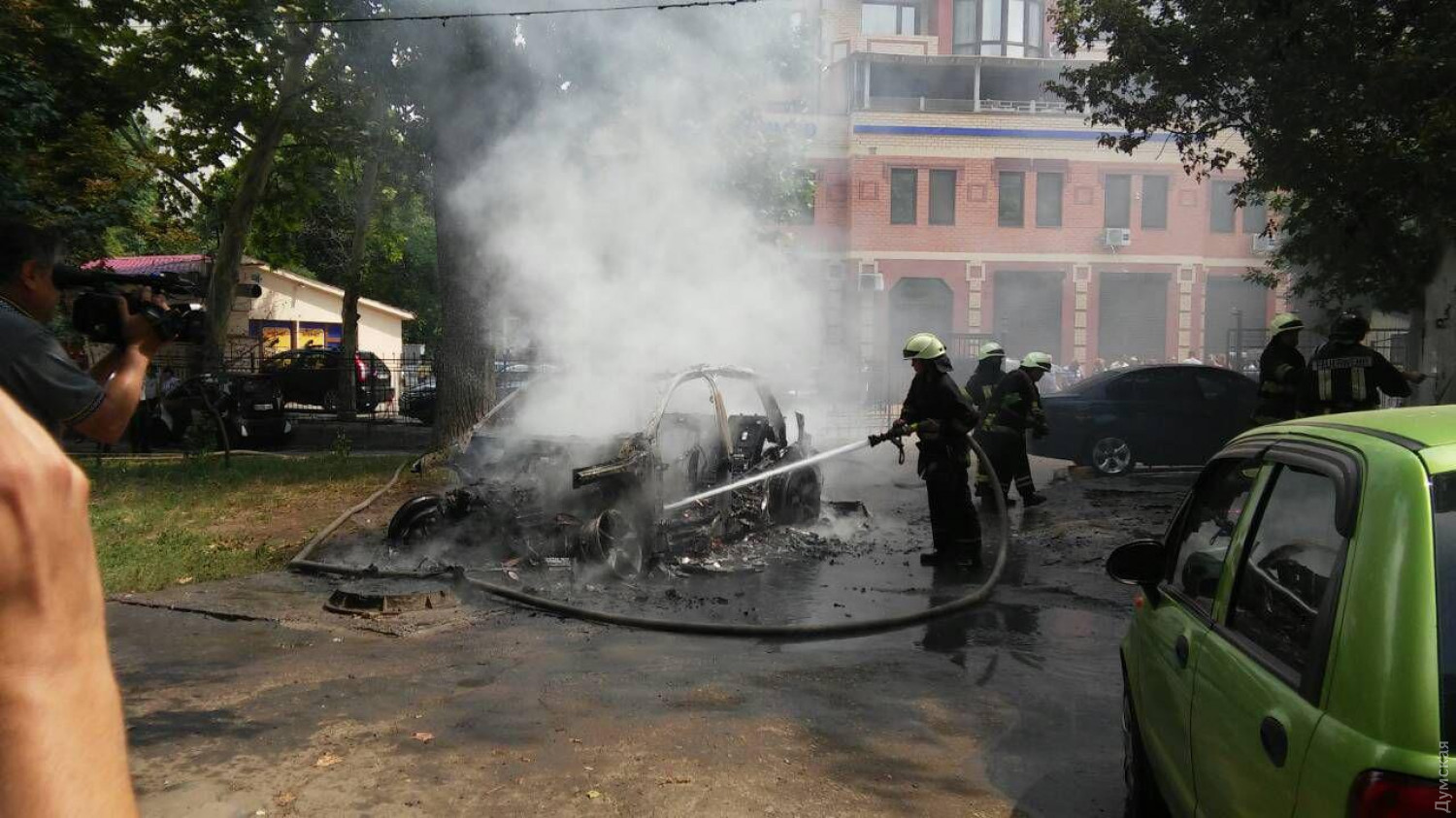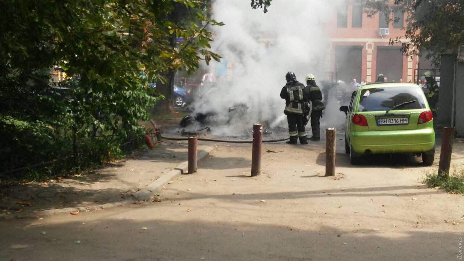 По предварительным данным, никто не пострадал. Возгорание началось в моторном отсеке авто. Машина полностью сгорела и восстановлению не подлежит. Причина ЧП выясняется, на месте работают сотрудники ГСЧС. ОБНОВЛЕНО в 13:20 Как передает корреспондент «Думской» с места, пламя начало перекидываться на соседний автомобиль «БМВ». По словам очевидцев, они разбили стекло и оттащили машину. Огонь немного повредил также еще один припаркованный рядом автомобиль.