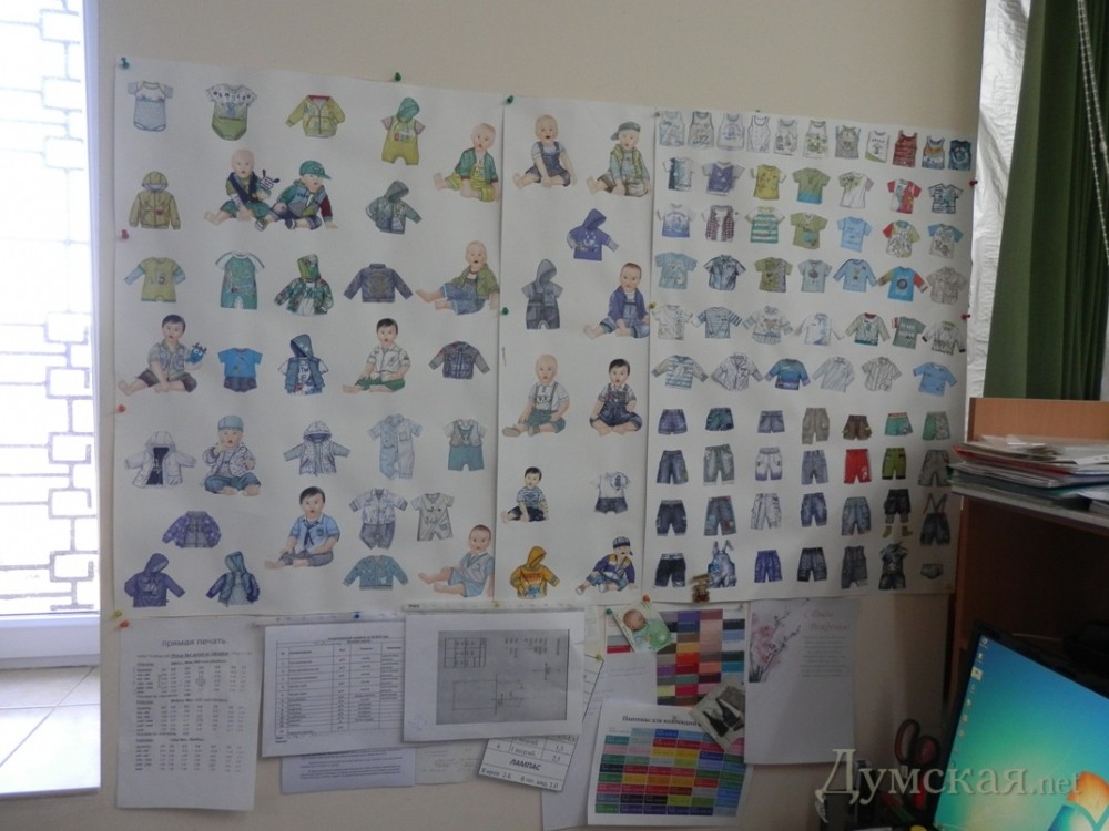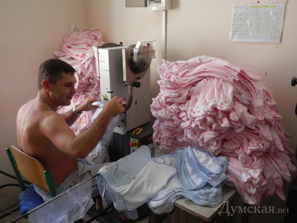 В Одессе шьют распашонки для младенцев всей Украины: рабочие носят маски и говорят, что в подпольных цехах легче«Думская» решила возродить полузабытый журналистский жанр производственного репортажа. Сейчас подобного рода материалы наша пресса публикует очень редко. Как правило, речь идет о банальной рекламе, а то и откровенной джинсе. Редакция заверяет своих читателей, что в этом цикле ничего подобного публиковать не собирается. Наша цель — показать, что в родной Одессе, несмотря на постсоветскую деиндустриализацию, все еще остались предприятия, способные вполне успешно конкурировать не только с украинскими, но и зарубежными фирмами. Ваш корреспондент Надежда Маркевич побывала на фабрике детской одежды, расположенной в депрессивном микрорайоне «Большевик». Фабрика умудряется выживать в условиях доминирования на рынке польских, турецких и китайских производителей. Более того, продукция этого заводика, представляющего собой, скорее, большую швейную мастерскую, экспортируется даже в Россию. Когда-то это была кожгалантерея, а сейчас здесь шьют костюмчики для самых маленьких. По словам директора предприятия Леонида Яворского, все началось 18 лет назад… с двух швейных машинок. «Тогда в Украине была либо очень дорогая детская одежда, либо дешевая, но совсем плохая. А сегмент доступной, но хорошей одежды пустовал. Вот мы его и заняли», — рассказывает руководитель. Сейчас на предприятии — более 70 швейных станков и почти полторы сотни сотрудников: модельеров, дизайнеров, закройщиков, швей, технологов и многих других. Рабочий день на заводе начинается в 9 утра. Первый цех, с которого стартует создание детских распашонок и ползунков – экспериментально-технологический. Сюда поступает натуральный трикотаж из Турции с пометкой «эко» (100%-й хлопок — ткань, как уверяют заводчане, совершенно безопасная для кожи младенца). Он проходит массу проверок: «Сырье растягивают, взвешивают, делают анализ нитки, проверяют на вредные вещества, стирают. Нужно убедиться, что ткань действительно натуральная, не имеет неприятного запаха, не содержит вредных красителей, устойчива к стирке. Только после всех испытаний материал отдают на раскройку», — говорит директор. Однако перед тем, как кроить, нужно знать, какой продукт должен в итоге получиться. Сердце предприятия – не в производственных цехах, а в отделе модельеров, этих конструкторов одежки для самых маленьких. Занятие, говорят специалисты, не менее сложное, чем разработка космических аппаратов. Кабинет дизайнера похож на музей. На стенах – сотни изображений самых обычных детских ползунков. Оказывается, здесь тоже есть где развернуться творческому человеку! «Вот, посмотрите — осенне-зимние тенденции. Мы всегда покупаем брендбуки, чтобы знать конъюнктуру рынка, но никогда не копируем чужое, делаем свое», — улыбаясь, поясняет нам модельер Анна, добавляя, что в ассортименте одесского завода – более сотни различных моделей для деток от 0 до 10 лет – распашонки, ползунки, шапочки, маечки, гольфики, платья и т.д. Эскизы, вышедшие из-под карандашей дизайнеров, поступают в раскроечный цех вместе с сырьем. Огромные полотнища, которые рабочие называют между собой «пирогами», делят здесь на сотни маленьких «пирожных», в смысле деталей будущих костюмчиков. Раскройщики трудятся в специальных масках. Они 