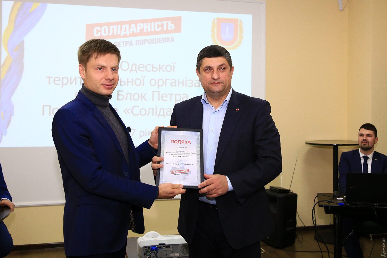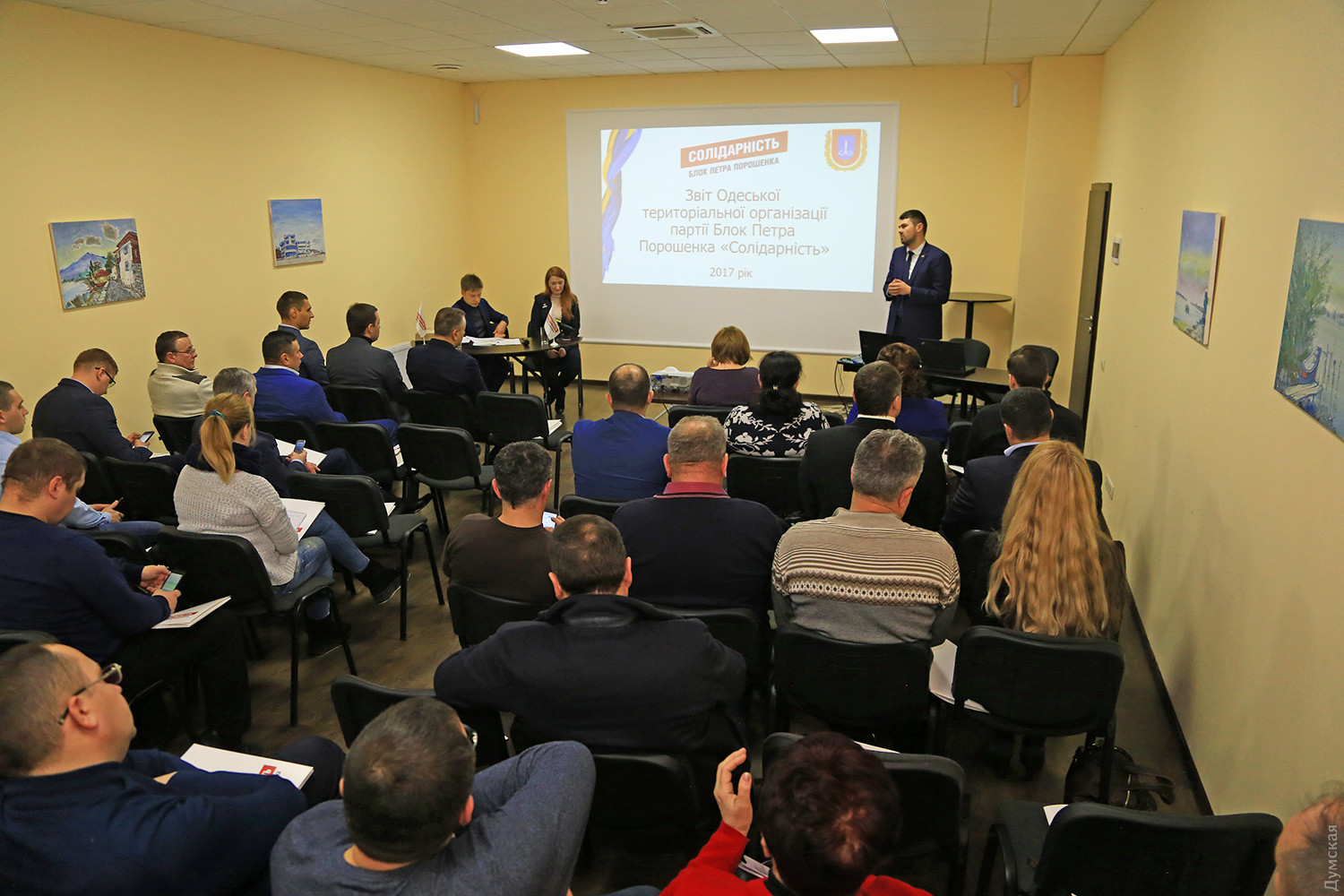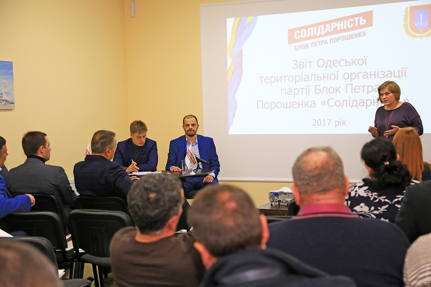 Сегодня, 24 февраля, состоялась отчетная конференция Одесской территориальной организации партии «Блок Петра Порошенко «Солидарность». Сложные погодные условия не помешали делегатам прибыть в Одессу даже из дальних районов области. На конференции присутствовали руководители 36 партийных организаций — городских и районных, председатель Одесской территориальной организации «БПП «Солидарность» Алексей Гончаренко, председатель Одесской городской организации партии Михаил Шмушкович, а также представители молодежного крыла «Солидарная молодежь». В ходе конференции переизбрали совет Одесской территориальной организации БПП в составе Сергея Паращенко, Алексея Потапского, Анатолия Урбанского и Михаила Шмушковича. Также была переизбрана контрольно-ревизионная комиссия в составе Владислава Перегудова, Олега Звягина и Натальи Закордонской. Руководитель Секретариата Одесской территориальной организации партии БПП «Солидарность» Валентина Шульц представила отчет о работе организации за прошлый год, а руководитель ГО «Солидарная молодежь» Сергей Сизоненко рассказал о деятельности молодежного крыла партии — одного из лучших подразделений «молодежки» в Украине. Делегаты обсудили итоги работы организаций за прошлый год и обсудили перспективные планы на следующий. За весомый вклад в партийное строительство почетными грамотами наградили представителей Беляевской районной и городской организации БПП, а также Измаильской и Белгород-Днестровской городских организаций, Березовской, Великомихайловской, Килийской и Ширяевской районных организаций. «Для нас главное, чтобы Измаил был точкой стабильности в нашем государстве. Горсовет уделяет этому огромное значение и приоритетом в нашей работе мы считаем благосостояние наших избирателей. Мы чувствуем поддержку центра и области, поэтому вместе нам легче решать многие задачи», — отметил мэр Измаила Андрей Абрамченко. Как рассказал председатель Одесской городской организации «БПП «Солидарность» Михаил Шмушкович, партия везде старается показывать хорошие результаты. Одно из важнейших достижений — проводимая в стране децентрализация. «Если бы не было децентрализации, я сомневаюсь, что были бы такие бюджеты у Одессы, Харькова, Днепра и так далее, — отмечает Михаил Шмушкович. — По итогам прошлого года можно сказать, что сельские громады развиваются очень успешно, но наш главный приоритет — не останавливаться на достигнутом, работать и добиваться результатов. Этот год будет последним, в котором не будет больших выборов. В 2019 состоятся выборы президента, затем будут выборы в Раду, потом в местные советы. Поэтому именно в 2018 году люди должны увидеть и оценить результаты не по статьям в газетах, а почувствовать лично». В свою очередь председатель Одесской территориальной организации «БПП «Солидарность», народный депутат Алексей Гончаренко рассказал, что является залогом успеха партии. «В прошлом году мы достигли хороших результатов на выборах в ОТГ. Мы организация политическая, поэтому выборы для нас - это всегда тест на доверие и свидетельство того, что мы на правильном пути, — уверен Гончаренко. — Сегодня мы ставили много задач. Мы помогали и будем помогать переселенцам, АТОшникам, крымско-татарской общине, поднимаем международные вопросы. Показательно то, что люди о
