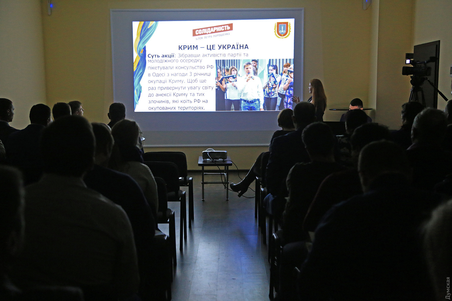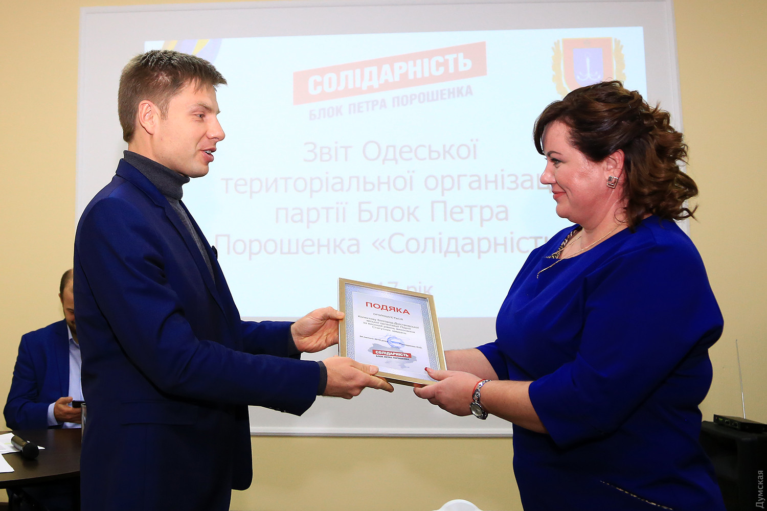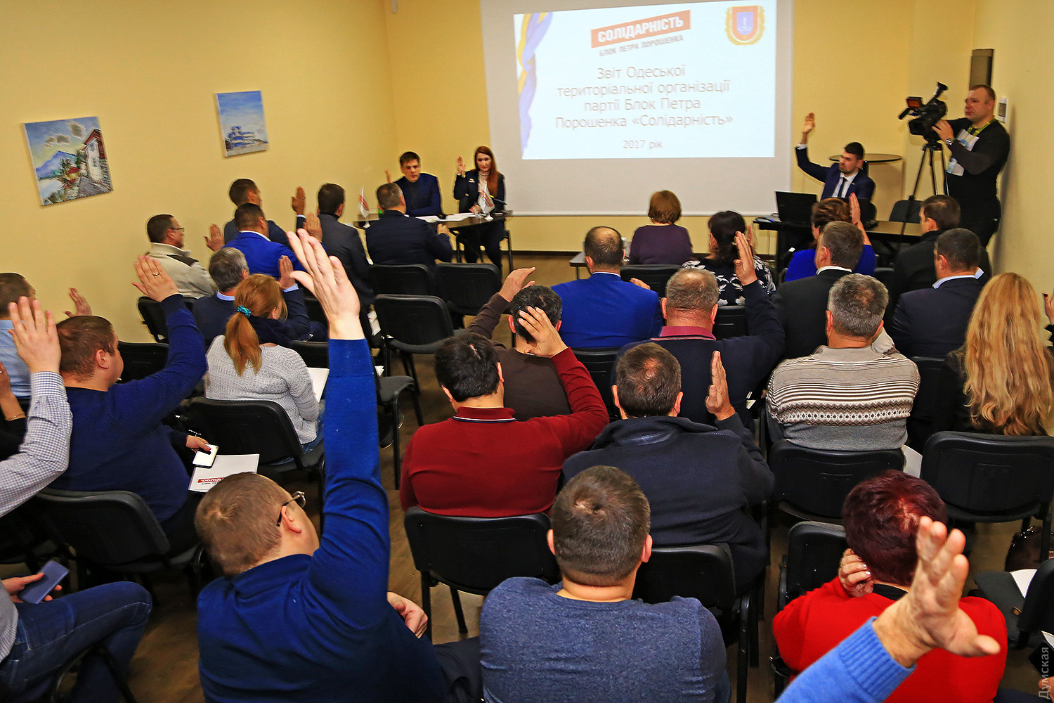 Сегодня, 24 февраля, состоялась отчетная конференция Одесской территориальной организации партии «Блок Петра Порошенко «Солидарность». Сложные погодные условия не помешали делегатам прибыть в Одессу даже из дальних районов области. На конференции присутствовали руководители 36 партийных организаций — городских и районных, председатель Одесской территориальной организации «БПП «Солидарность» Алексей Гончаренко, председатель Одесской городской организации партии Михаил Шмушкович, а также представители молодежного крыла «Солидарная молодежь». В ходе конференции переизбрали совет Одесской территориальной организации БПП в составе Сергея Паращенко, Алексея Потапского, Анатолия Урбанского и Михаила Шмушковича. Также была переизбрана контрольно-ревизионная комиссия в составе Владислава Перегудова, Олега Звягина и Натальи Закордонской. Руководитель Секретариата Одесской территориальной организации партии БПП «Солидарность» Валентина Шульц представила отчет о работе организации за прошлый год, а руководитель ГО «Солидарная молодежь» Сергей Сизоненко рассказал о деятельности молодежного крыла партии — одного из лучших подразделений «молодежки» в Украине. Делегаты обсудили итоги работы организаций за прошлый год и обсудили перспективные планы на следующий. За весомый вклад в партийное строительство почетными грамотами наградили представителей Беляевской районной и городской организации БПП, а также Измаильской и Белгород-Днестровской городских организаций, Березовской, Великомихайловской, Килийской и Ширяевской районных организаций. «Для нас главное, чтобы Измаил был точкой стабильности в нашем государстве. Горсовет уделяет этому огромное значение и приоритетом в нашей работе мы считаем благосостояние наших избирателей. Мы чувствуем поддержку центра и области, поэтому вместе нам легче решать многие задачи», — отметил мэр Измаила Андрей Абрамченко. Как рассказал председатель Одесской городской организации «БПП «Солидарность» Михаил Шмушкович, партия везде старается показывать хорошие результаты. Одно из важнейших достижений — проводимая в стране децентрализация. «Если бы не было децентрализации, я сомневаюсь, что были бы такие бюджеты у Одессы, Харькова, Днепра и так далее, — отмечает Михаил Шмушкович. — По итогам прошлого года можно сказать, что сельские громады развиваются очень успешно, но наш главный приоритет — не останавливаться на достигнутом, работать и добиваться результатов. Этот год будет последним, в котором не будет больших выборов. В 2019 состоятся выборы президента, затем будут выборы в Раду, потом в местные советы. Поэтому именно в 2018 году люди должны увидеть и оценить результаты не по статьям в газетах, а почувствовать лично». В свою очередь председатель Одесской территориальной организации «БПП «Солидарность», народный депутат Алексей Гончаренко рассказал, что является залогом успеха партии. «В прошлом году мы достигли хороших результатов на выборах в ОТГ. Мы организация политическая, поэтому выборы для нас - это всегда тест на доверие и свидетельство того, что мы на правильном пути, — уверен Гончаренко. — Сегодня мы ставили много задач. Мы помогали и будем помогать переселенцам, АТОшникам, крымско-татарской общине, поднимаем международные вопросы. Показательно то, что люди о
