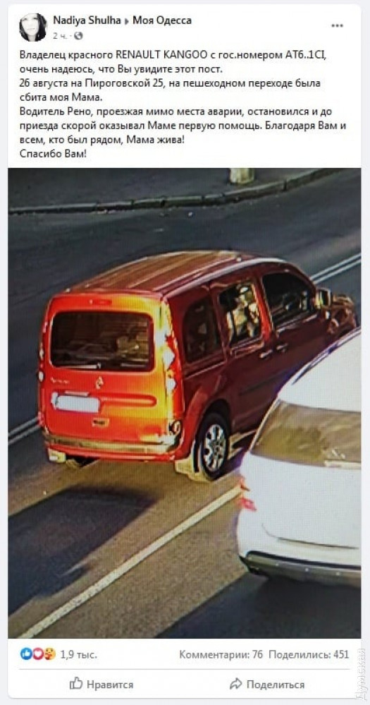 Инцидент произошел еще 28 августа на Пироговской улице, сообщили в ведомстве. Одесситка переходила улицу по пешеходному переходу, когда ее сбило авто.