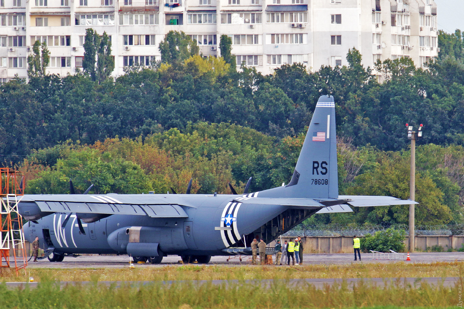 Военно-транспортный самолет ВВС США C-130 Hercules совершил аварийную посадку в одесском аэропорту.