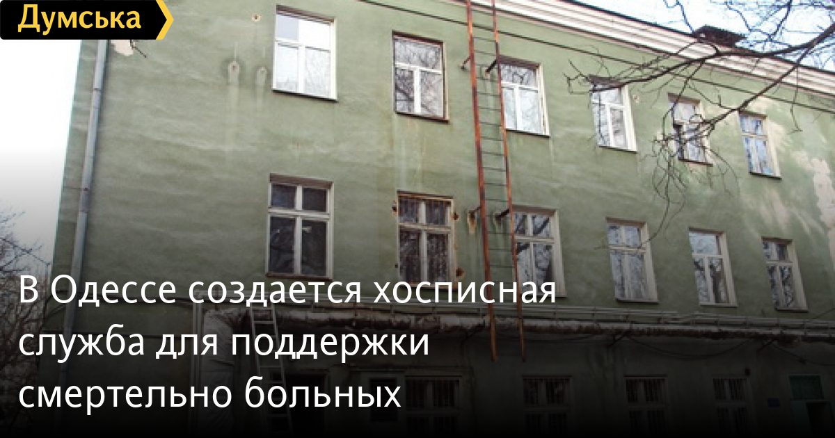 Одесский горздрав создает службу паллиативной и хосписной помощи пациентам с неизлечимыми заболеваниями. В частности, как сообщили в мэрии, на территории городской клинической больницы №3 им. проф. Л.И. Алейниковой уже ремонтируют отдельно стоящий корпус, в котором разместят хоспис для больных с терминальными сердечно-сосудистыми и сосудисто-мозговыми недугами. В здании уже заменили лифт. Сейчас выполняются работы по капитальному ремонту коммуникаций, систем электро- и водоснабжения. Кроме того, в горздраве планируют создать выездную многопрофильную мобильную бригаду для оказания реабилитационной и паллиативной помощи больным детям. Кроме врача и медицинских сестер, в ее состав войдут психолог и социальный работник. На первом этапе мобильная бригада будет выезжать на дом к пациенту в дневное время, затем она заработает в круглосуточном режиме. ![]() В ГКБ №3 приводят в порядок один из корпусов. Здесь разместится хоспис для неизлечимо больных. Фото горсовета Для дальнейшего развития паллиативной помощи в Одессе первый заместитель директора городского департамента здравоохранения Ирина Соколова предложила использовать кабинеты медико-социальной помощи, созданные на базе крупных городских поликлиник. Дальнейшую работу по организации паллиативной помощи в Одессе планируется проводить комплексно при участии городского департамента труда и социальной политики. О создании хосписной службы думают и областные власти. В частности, такое отделение откроют на базе регионального онкологического диспансера, сообщает «ДумскаяТВ».