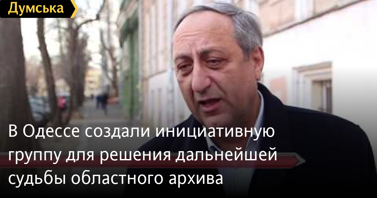 В Одессе создали инициативную группу для решения дальнейшей судьбы областного архиваВ Одессе создали инициативную группу для решения дальнейшей судьбы областного архива. Если решение облсовета о перемещении документов в психиатрическую больницу не будет пересмотрено, сотрудники архива подадут в суд. СМЕРТЬ РОССИЙСКИМ ОККУПАНТАМ! Заметили ошибку? Выделяйте слова с ошибкой и нажимайте control-enter Думская ТВ. Сюжеты: