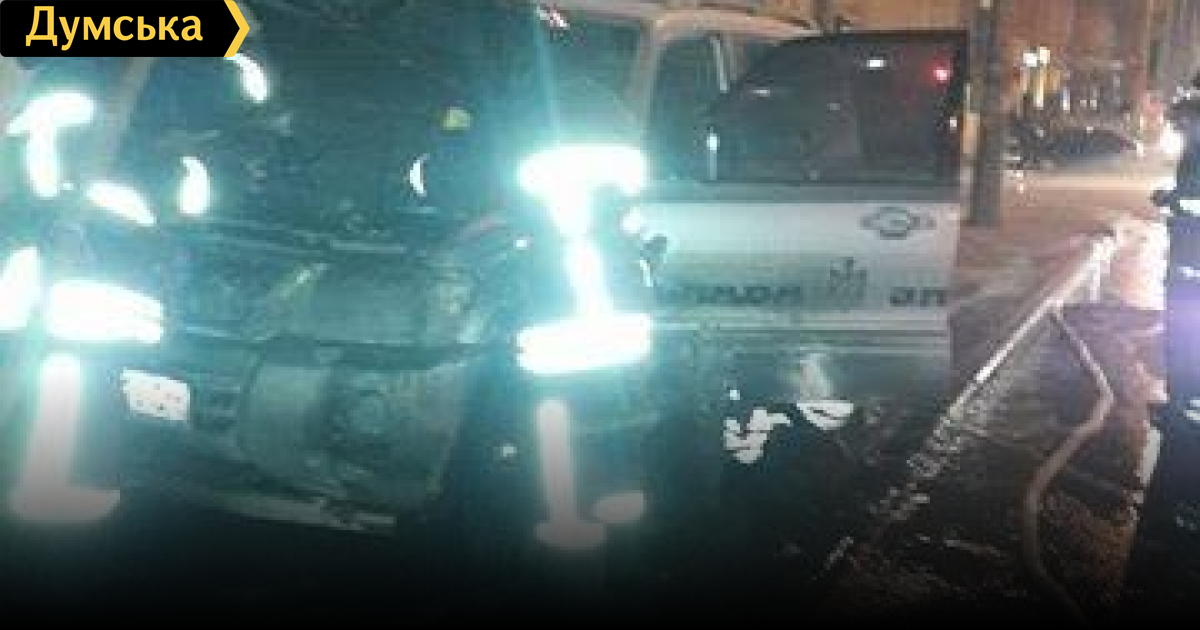 Секунд через 30-40 (может немного больше) после возгорания от ветеринарной клиники, расположенной в соседнем здании, стартовал внедорожник, чуть было не спровоцировав ДТП. Резко рванул в сторону жилого массива «Курсаки» (по «новой» дороге), у первого светофора (там ПП) повернул направо, на Желябова, в сторону Ивановского моста.