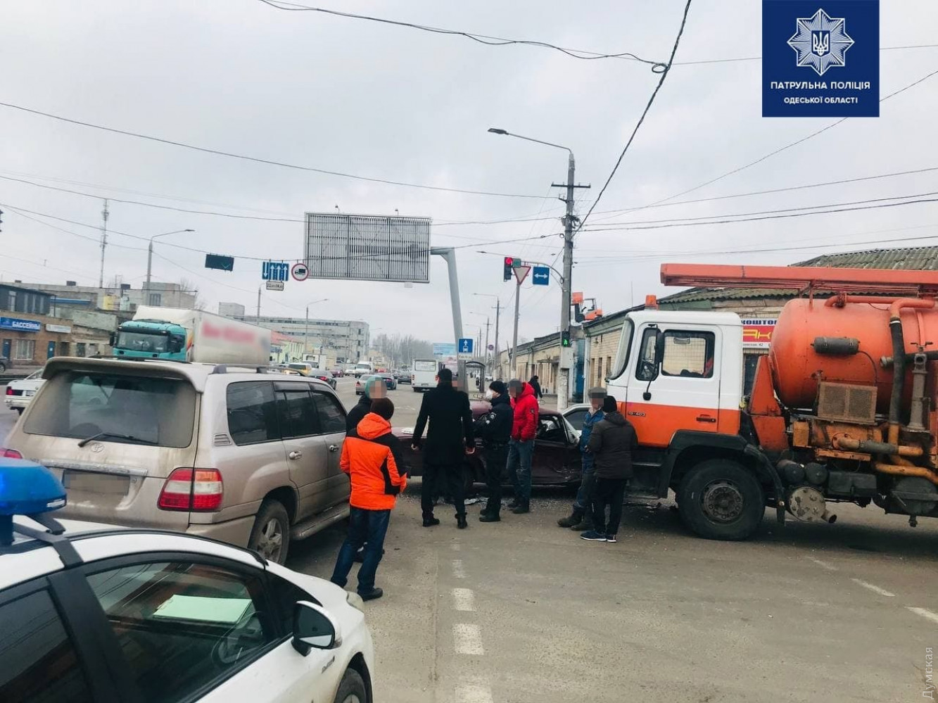 Три автомобиля столкнулись сегодня утром на Николаевской дороге в Одессе. Как сообщили в пресс-службе патрульной полиции, ДТП случилось на регулированном перекрестке. Водитель ВАЗа, совершавший левый поворот на Лиманную улицу, не пропустил двигавшиеся навстречу Toyota Land Cruiser та МАН. Мужчина получил травмы и обратился за помощью в больницу. СМЕРТЬ РОСІЙСЬКИМ ОКУПАНТАМ! Помітили помилку? Виділяйте слова з помилкою та натискайте control-enter Новини по цій темі: 30 серпня 2025: Машина вилетіла в кювет: мер Рені потрапив в аварію, його мати загинула, а маленький син у лікарні (фото) 18 серпня 2025: Троє загинули, один у лікарні: на трасі Одеса-Рені водій Mercedes не пропустив фуру (фото) 28 липня 2025: П'яний на "Ягуарі" або гіпертонік? Звільнений топ-посадовець одеської поліції хоче повернутися на службу 2 квітня 2025: В Одесі водій BMW спровокував аварію, в якій постраждали п`ятеро людей, і втік (фото, відео) |