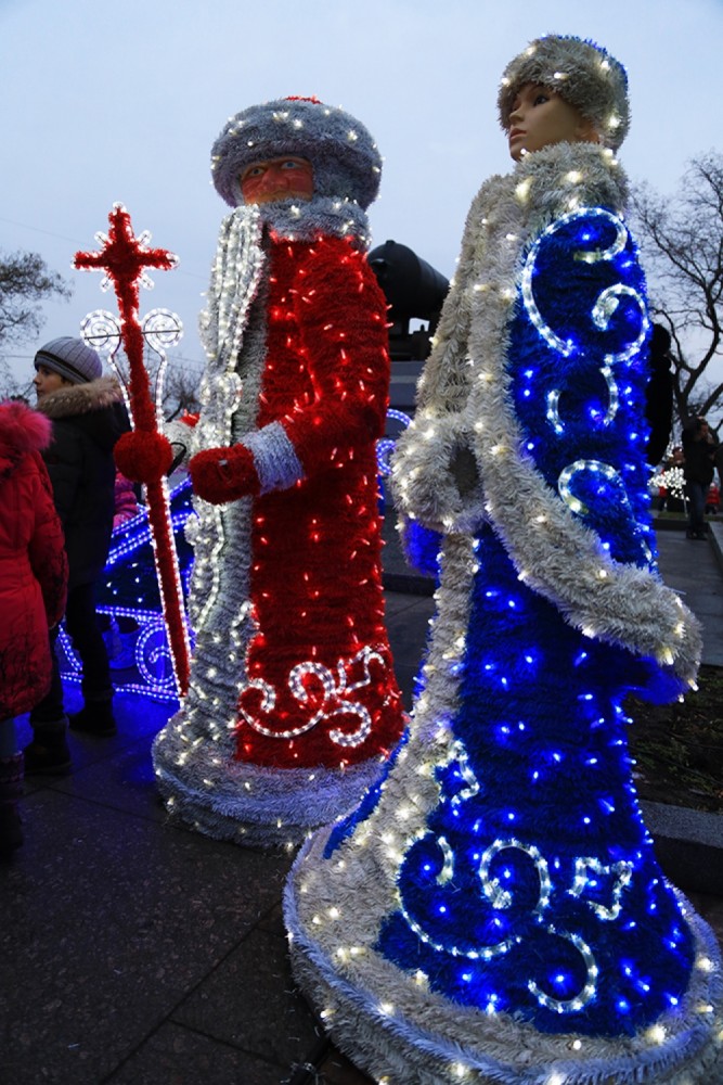 Сегодня, 19 декабря, на Думской площади состоялся праздничный концерт и торжественное открытие главной елки города. Собравшимся детям Святой Николай и его помощники раздали более двух тысяч подарков. Свои номера зрителям показали ученики Детской театральной школы и представители вокального ансамбля «Anima». Кроме того, гости праздника стали участниками конкурсов, викторин и хоровода вокруг главной елки. Напомним, украшения елки состоят из гирлянд, общая протяженность которых составляет около четырех километров. Высота конструкции — 20 метров. Также Думскую площадь по уже сложившейся традиции украсил сказочный городок со светящимися фигурами животных, Деда Мороза и Снегурочки. СМЕРТЬ РОСІЙСЬКИМ ОКУПАНТАМ! Помітили помилку? Виділяйте слова з помилкою та натискайте control-enter |