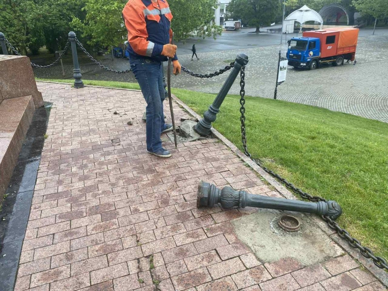 Декоративное ограждение Александровской колонны в парке Шевченко повредили вчера неизвестные.