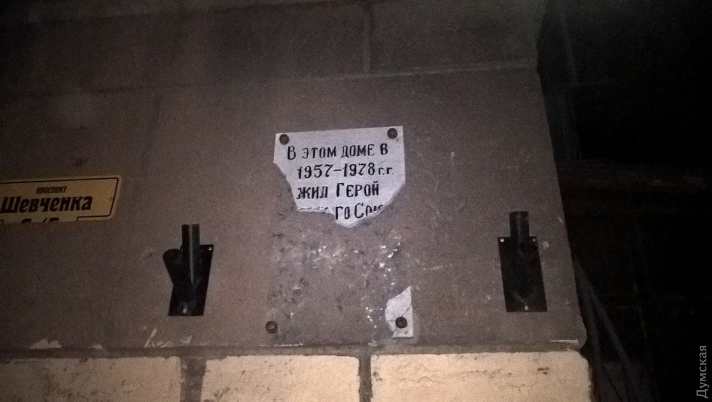 В Одессе вандалы разбили мемориальную табличку в честь Героя Советского Союза