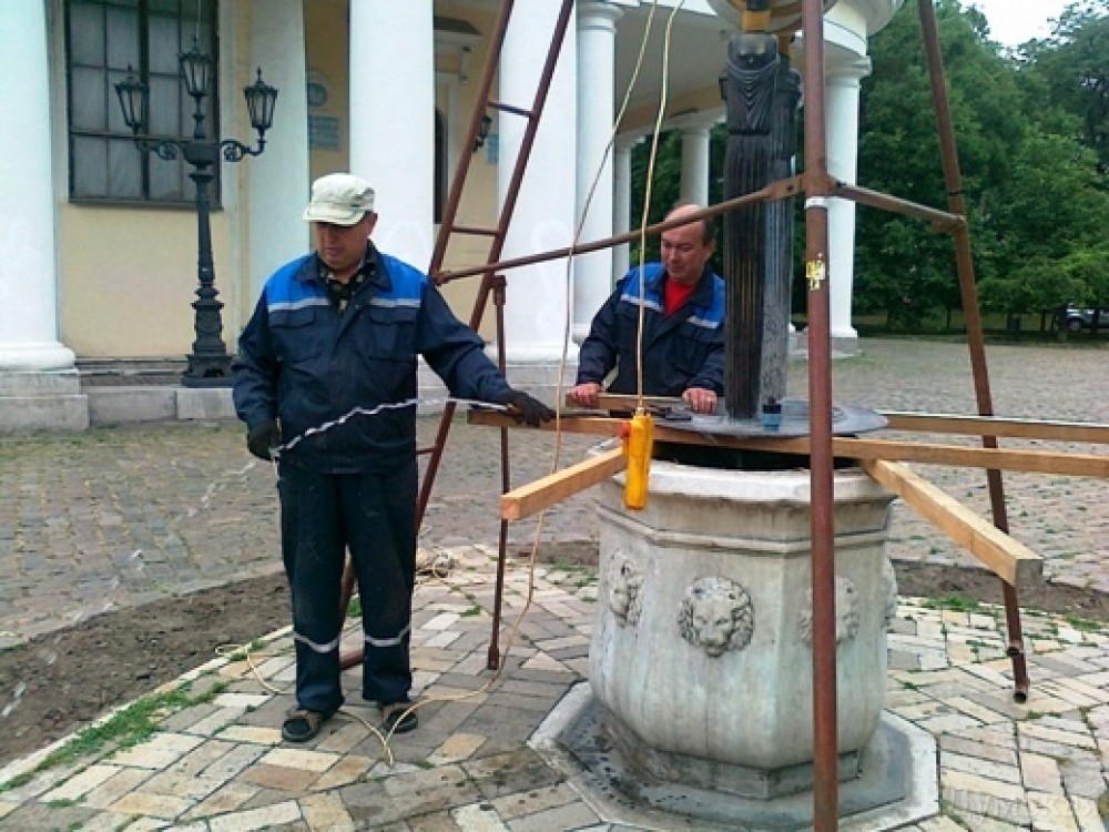 Специалисты коммунального предприятия «Сервисный центр» выполнили ремонт и запустили в работу колодец-фонтан «Источник», расположенный возле Воронцовского дворца. Как сообщила пресс-служба горсовета, коммунальщики восстановили вышедшие из строя трубопроводов подачи воды к фонтану и выполнили очистку трубопровода, находящегося внутри комплекса. Для выполнения данных работ специалистам пришлось демонтировать верхнюю чашу фонтана. Колодец-фонтан «Источник» был открыт в год двухсотлетия Одессы — в 1994 году. Автор композиции Михаил Рева дополнил старинный колодец композицией в едином стиле с Воронцовским дворцом. На колодце есть надпись на латинском языке: «Urbi et orbi» — «Граду и миру». До того, как превратиться в фонтан-источник, шестигранный колодец, сделанный из каррарского мрамора, был окрашен краской, исписан и выполнял функцию игрального стола для любителей домино и карт. СМЕРТЬ РОСІЙСЬКИМ ОКУПАНТАМ! Помітили помилку? Виділяйте слова з помилкою та натискайте control-enter